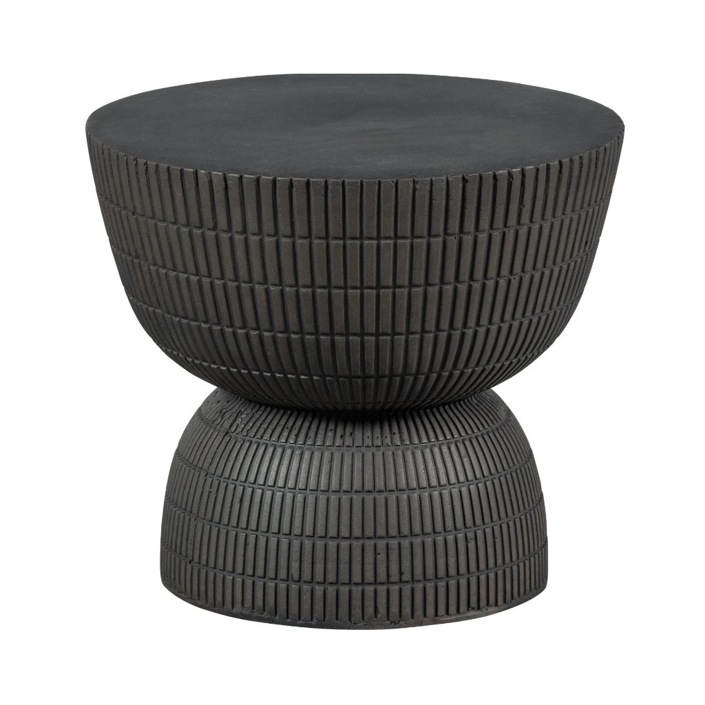 Stylový konferenční stolek SAMSON od holandského výrobce designového nábytku WOOOD. Krásný a elegantní kulatý stolek tvoří spodní nádherná robustní noha, na kterou navazuje kulatá deska s průměrem 40 cm. Celý stolek je vyroben z vláknitého jílu v tmavě hnědé barvě. Stolek má betonový vzhled a nápadné reliéfy po celém obvodu a je k dostání také v dalších velikostech. Vlhkost může způsobit nažloutlé nebo bílé skvrny.