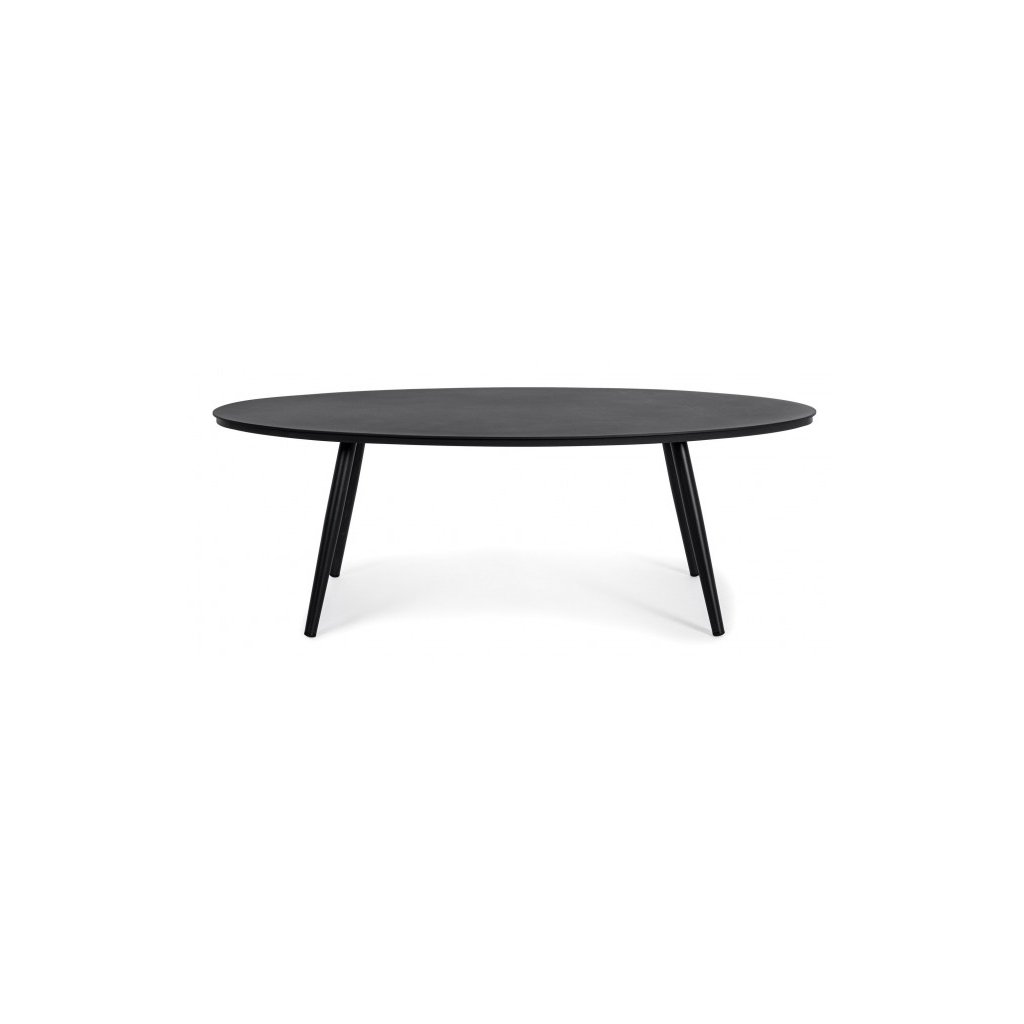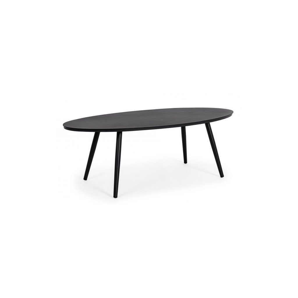 Konferenční stolek SPACE od italského výrobce stylového nábytku BIZZOTTO v provedení černého lakovaného kovu. SPACE tvoří vrchní oválná deska s černým práškováním, ke které připojíte 4 kovové nohy ve stejném provedení. Díky svému provedení z práškovaného kovu je tento moderní stolek vhodný pro vnější i vnitřní užití.