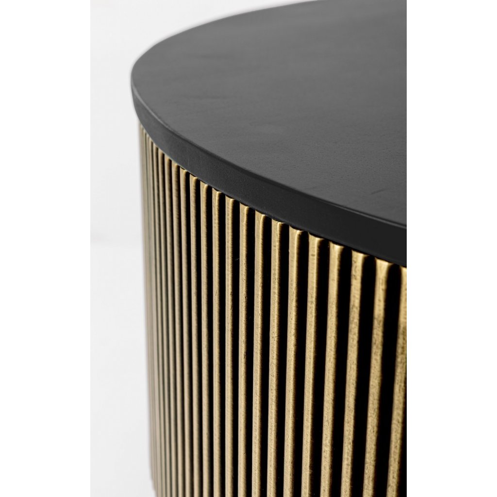 Konferenční stolek VIRAT od italského výrobce kvalitního nábytku BIZZOTTO. Konferenční stolek VIRAT je stylový kousek v krásné kombinaci zlaté a černé barvy. Široká, kulatá podstava zajišťuje stabilní postavení a poskytuje klidný vzhled. Kulatá deska je z mangového dřeva v černé barvě, která dodává luxusní nádech. Tento stolek má elegantní, dechberoucí a chladný design.