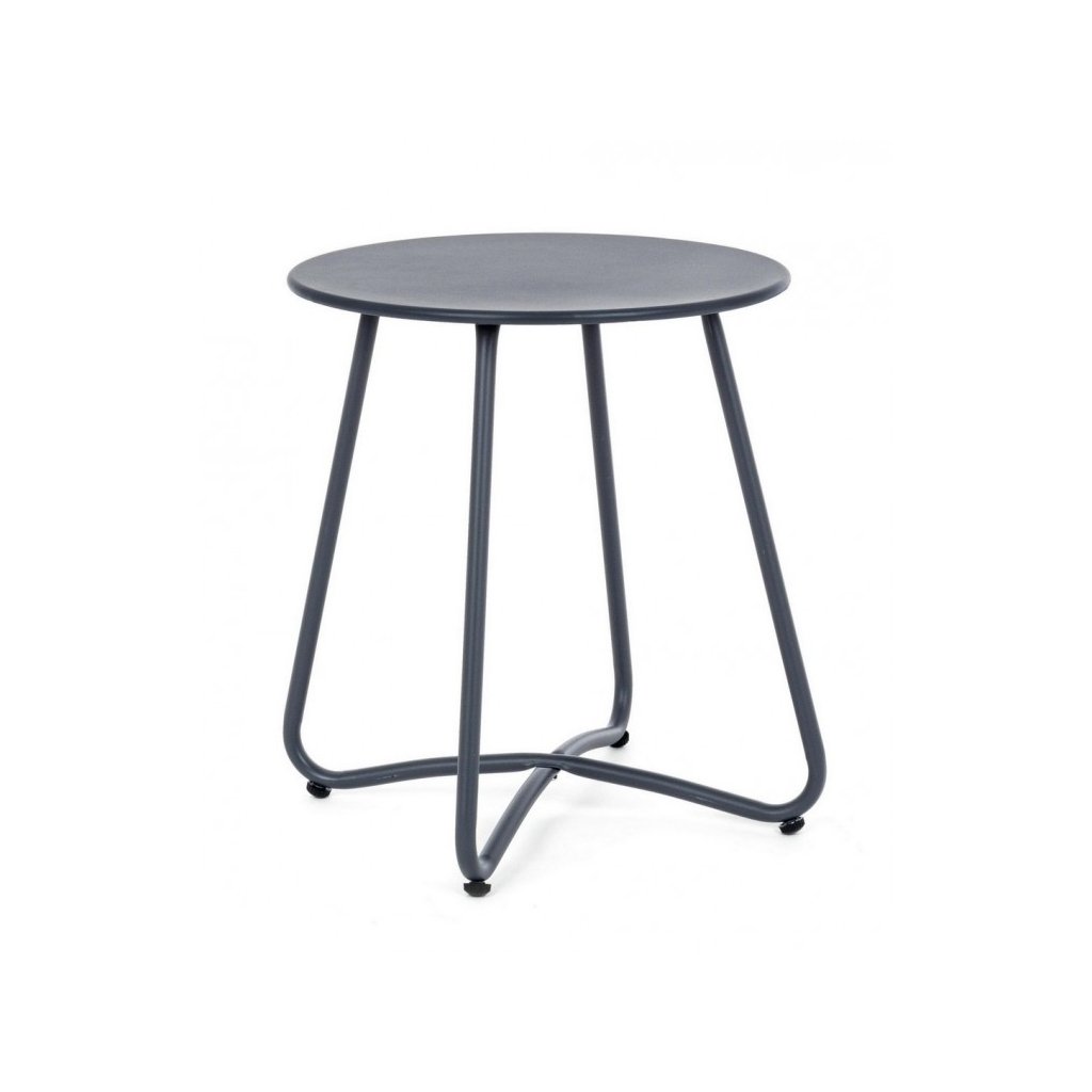 Zahradní kulatý konferenční stolek WISSANT od italského výrobce stylového nábytku BIZZOTTO. Stolek WISSANT s deskou o průměru 40 cm je kompletně vyroben z odolné oceli pro venkovní použití. Předměty z oceli se vyznačují dlouhou životností a odolností, stolek je též velmi lehký. Má 4 nohy, které zajišťují stabilitu a pevnost. Stolek se vyrábí i v dalších barevných variantách.