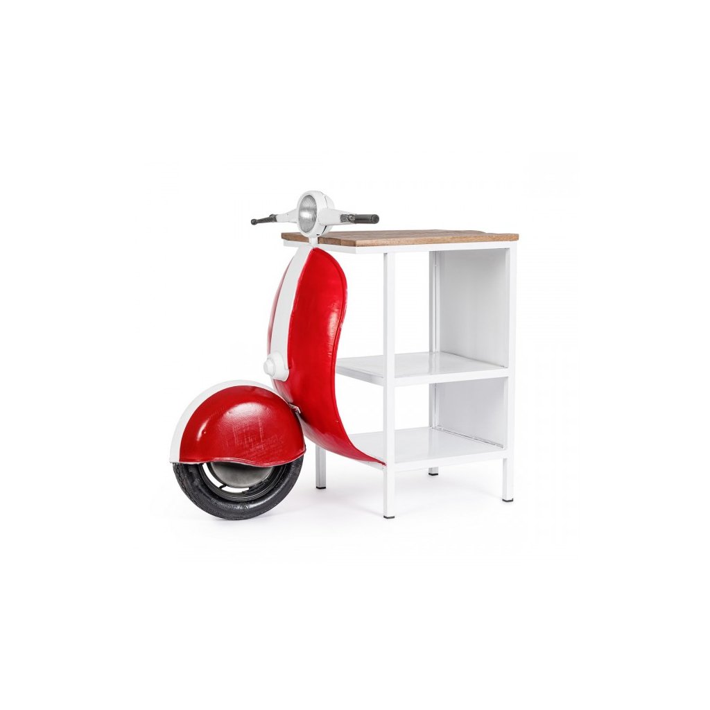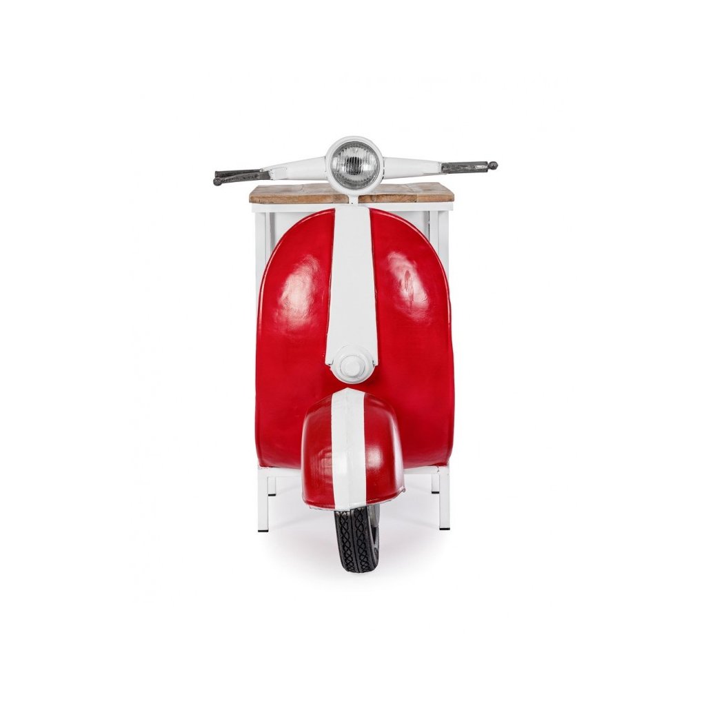 Designový konzolový bar VESPA od italského výrobce stylového nábytku BIZZOTTO. Velmi unikátní kousek, který je přímo stvořen pro milovníky skútrů. Bar tvoří ocelový rám, který znázorňuje skútr v červené barvěVrchní dřevěná deska je z mangového dřeva v hnědé barvě. VESPA má dvě police, které Vám skvěle poslouží pro uložení lahví a sklenic. Bar VESPA je ručně vyroben, takže se každý model může měnit v malých technických detailech.