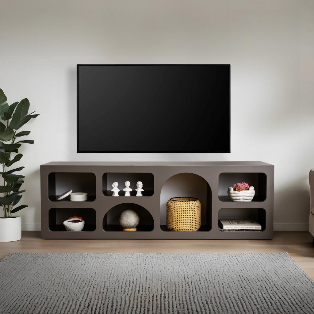 Krásný konzolový stolek LORIN od designového výrobce nábytku KALUNE DESIGN. Stolek je vyroben z dřevotřísky s melaminovou fólií v antracitovém provedení. LORIN je konzolový stolek s velmi zajímavým vzhledem, který skvěle využijete také jako TV stolek. Pokud potřebujete vnést do místnosti kousek elegance, stolek LORIN je pro vás ten pravý. Praktický a zároveň elegantní každým coulem.