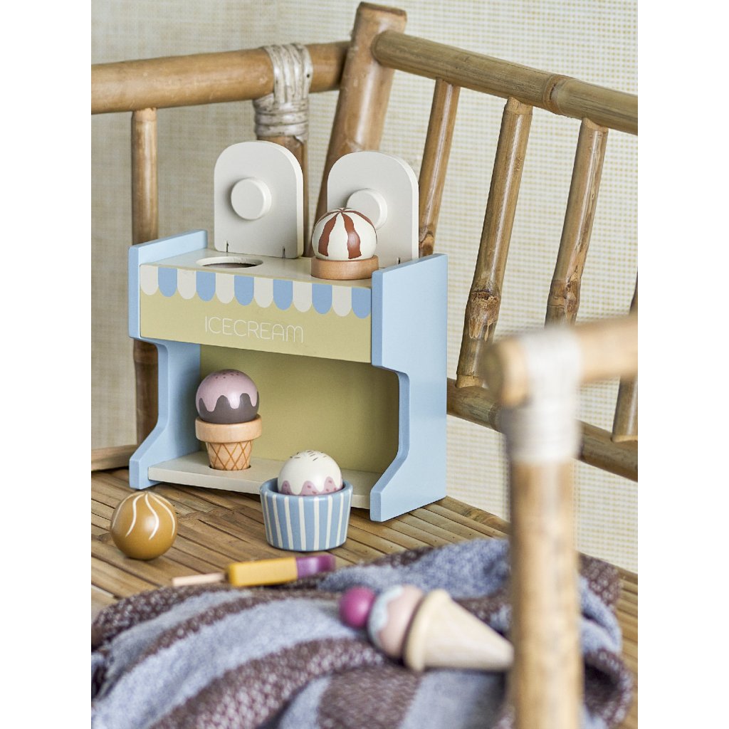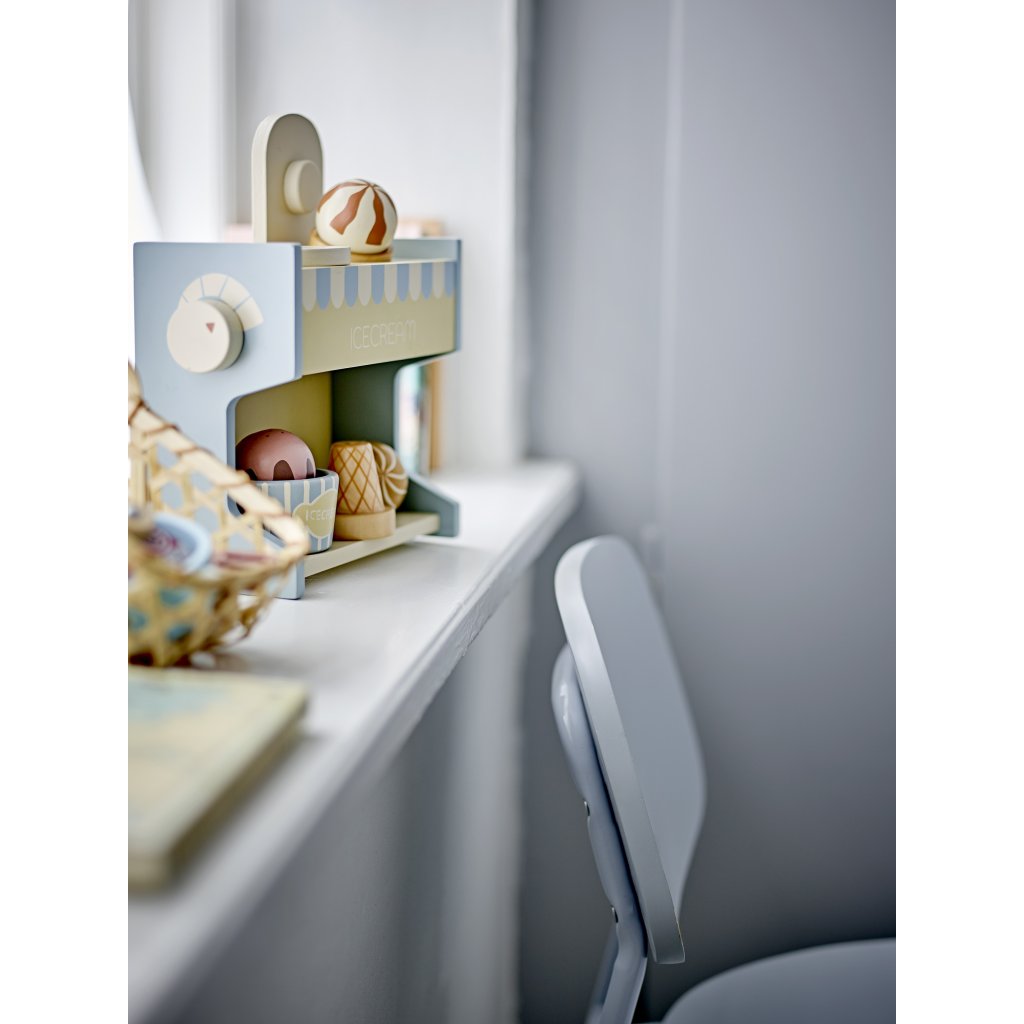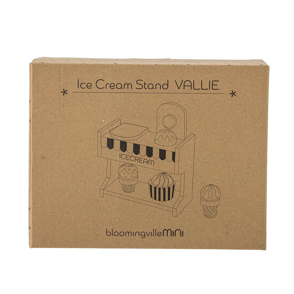 Dětská hračka ze dřeva VALLIE od dánské značky nádherného nábytku BLOOMINGVILLE. VALLIE je stánek na zmrzlinu, který je vyroben z ekologicky těženého dřeva. Vaše dítě tak může servírovat až 3 zmrzliny v kornoutku nebo pohárku a bude tak bavit všechny kolem.