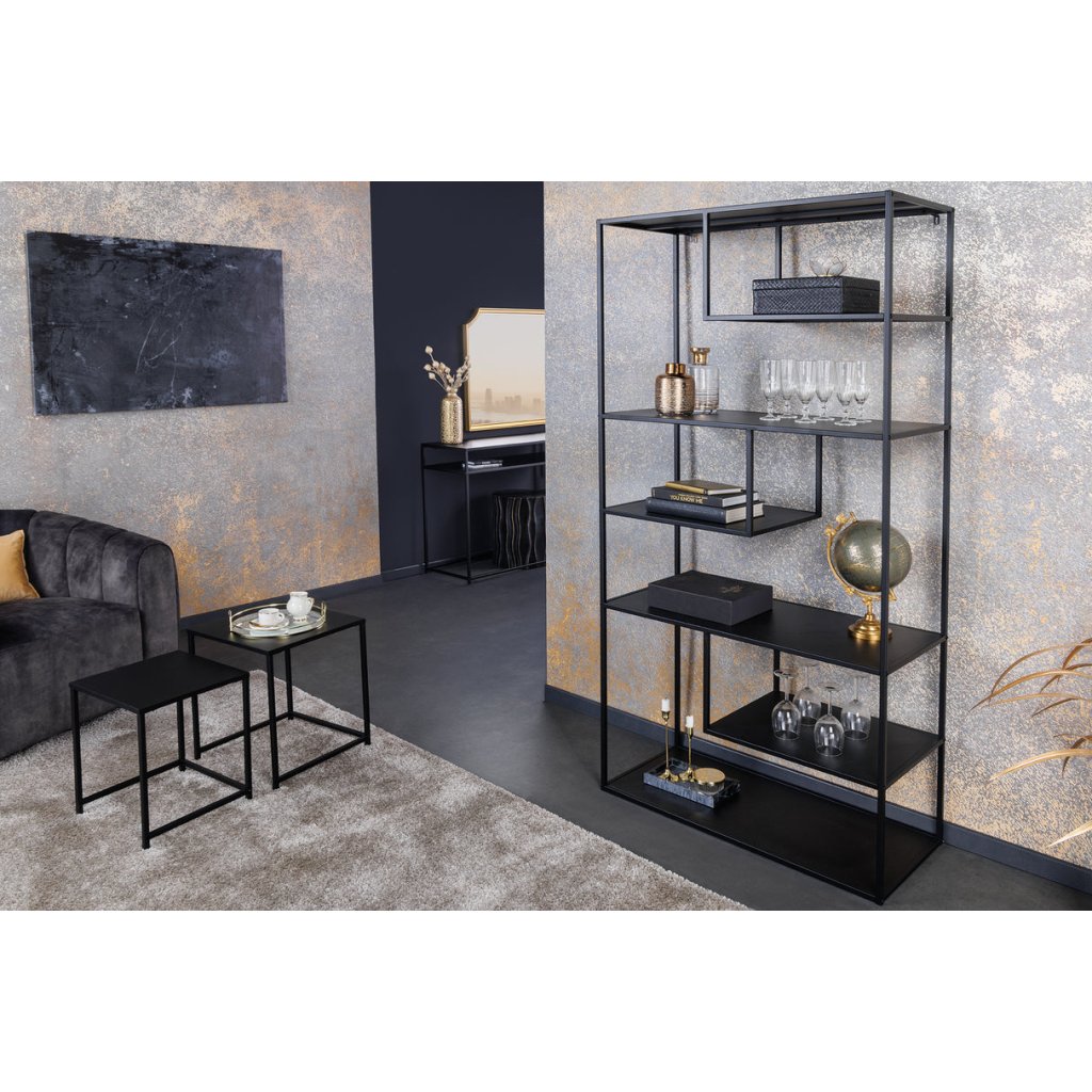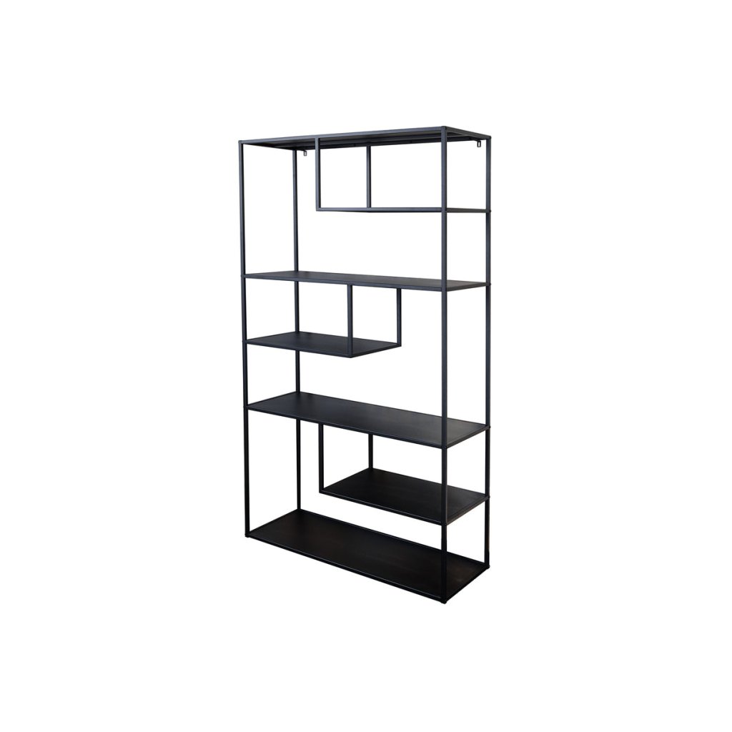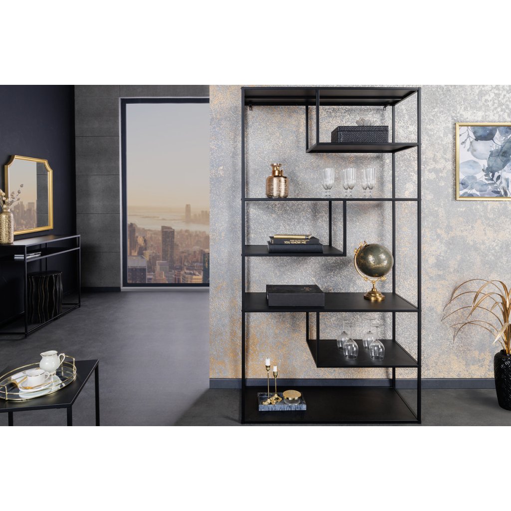 Designová kovová knihovna DURA od německé značky nádherného nábytku INVICTA. DURA má konstrukci 180x90x40 cm z tenkého kovu v černém laku, na než je položeno několik dlouhých a krátkých polic z tenkých černě lakovaných desek, na které můžete směle vyskládat svoje knihy, vázy, květiny či jiné dekorace a zkrášlit tím tak svůj domov. Díky nepravidelnému provedení jde o velmi stylový a designový prvek. K dostání i v menším provedení.