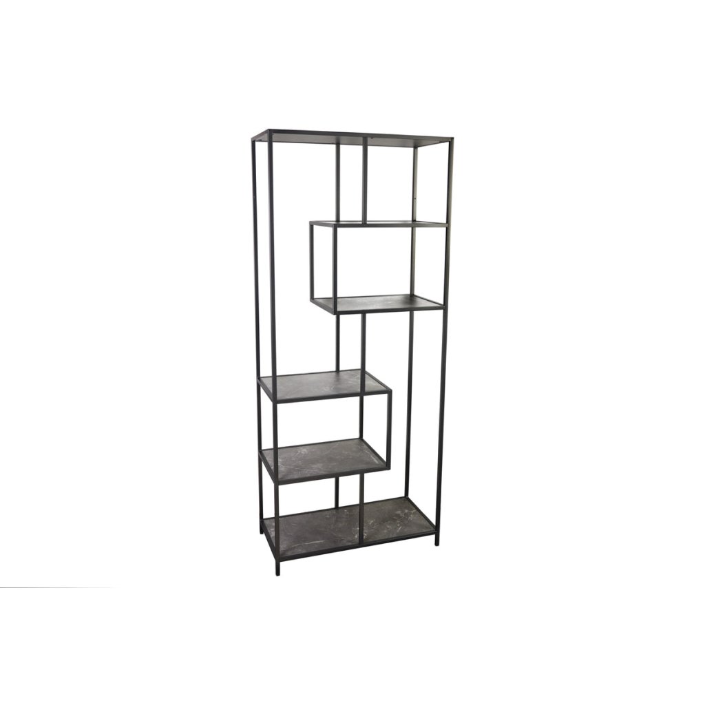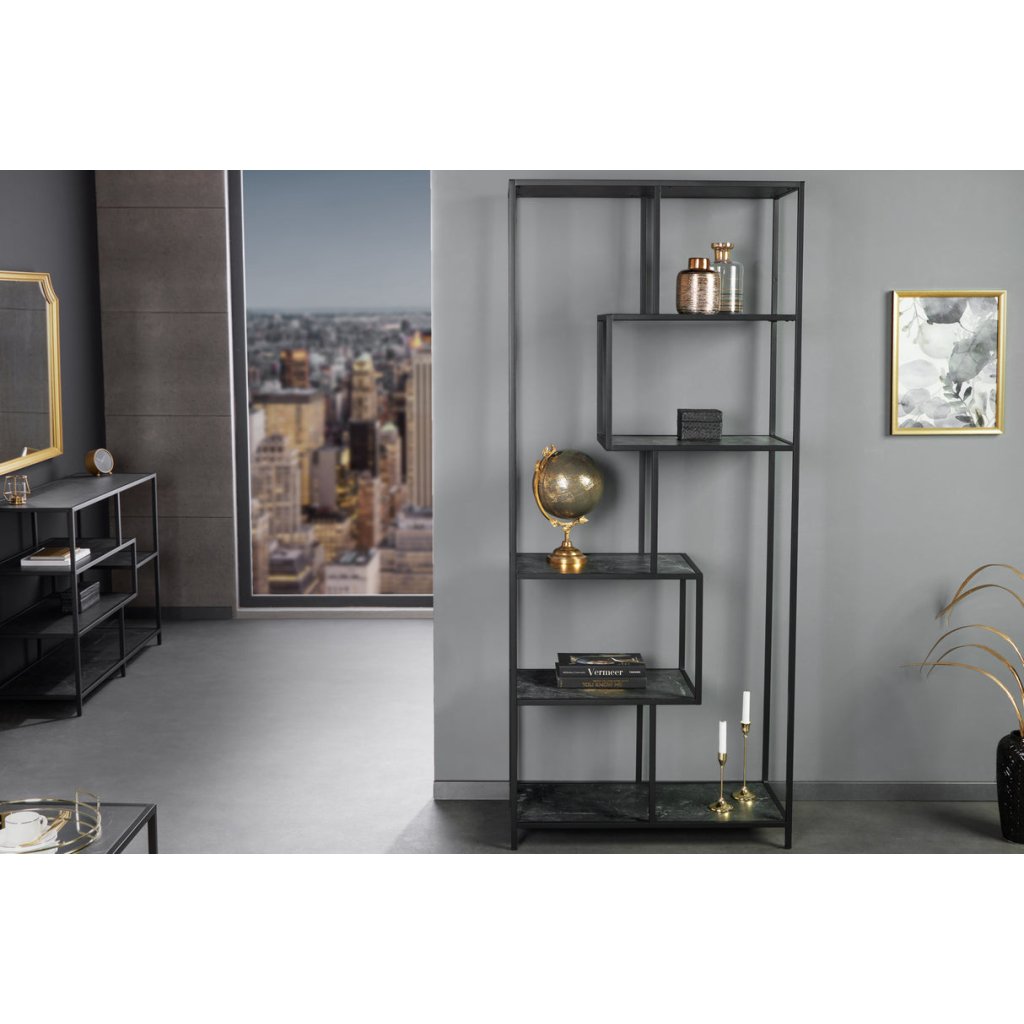 Designová kovová knihovna SLIM LINE od německé značky nádherného nábytku INVICTA. VITA má konstrukci 185x77x35 cm z tenkého kovu v černém laku, na než je položeno několik dlouhých a krátkých polic z tenké černé desky s melaminovou fólií imitující černý mramor, na které můžete směle vyskládat svoje knihy, vázy, květiny či jiné dekorace a zkrášlit tím tak svůj domov. Díky nepravidelnému provedení jde o velmi stylový a designový prvek. K dostání i v menším provedení.