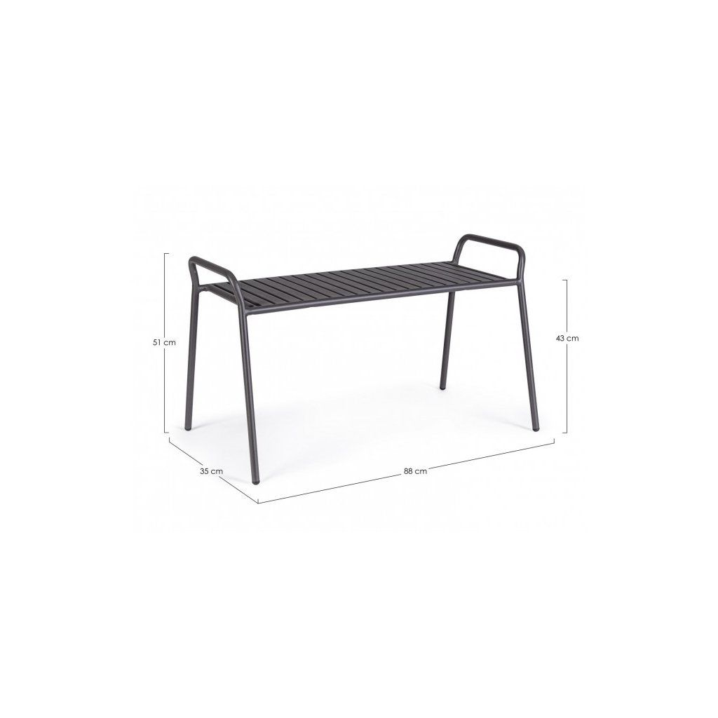 Stylová venkovní lavice DALYA od italského výrobce stylového nábytku BIZZOTTO. DALYA je dodávána v provedení černě lakovaného kovu pro venkovní účely. Má 4 decentní kovové nohy, 2 boční úchytky pro lepší manipulaci a držení, sedák z jednotlivých kovových "prkýnek". V dostání i v dalších barvách.