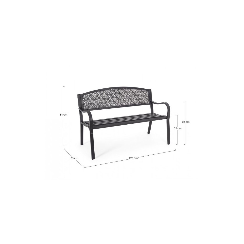 Stylová venkovní lavice LIZETTE od italského výrobce stylového nábytku BIZZOTTO v provedení antracitově lakovaného kovu pro venkovní účely.