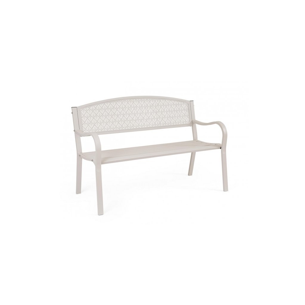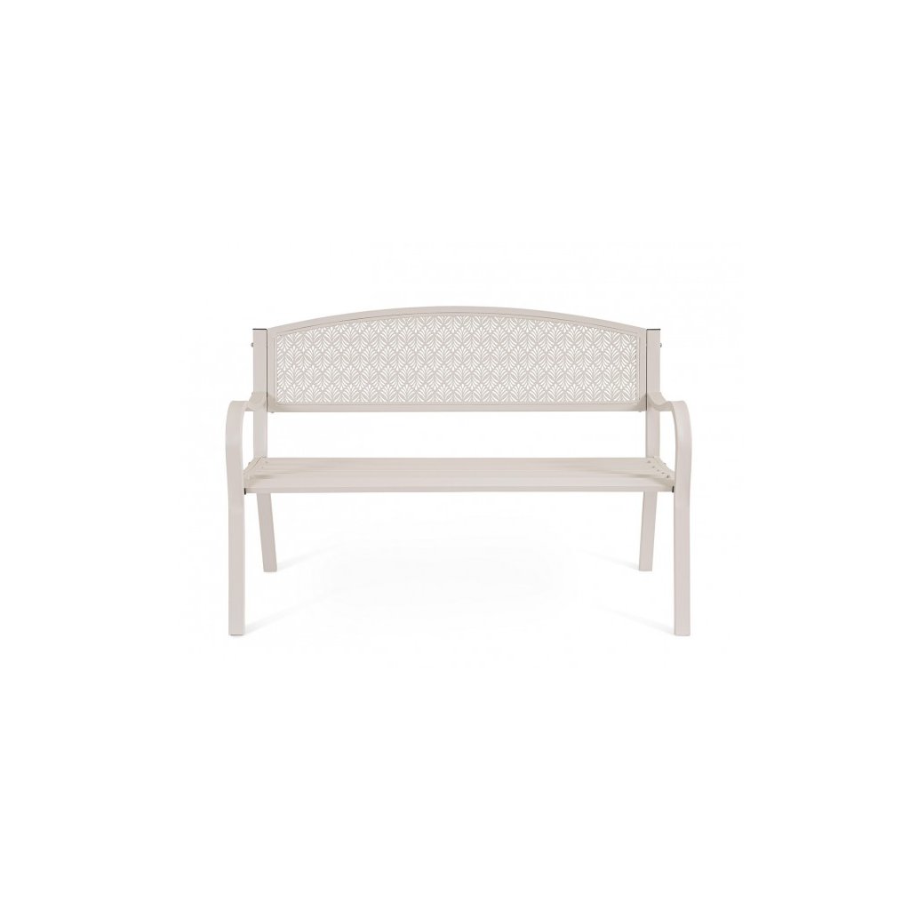 Stylová venkovní lavice LIZETTE od italského výrobce stylového nábytku BIZZOTTO v provedení krémově lakovaného kovu pro venkovní účely.