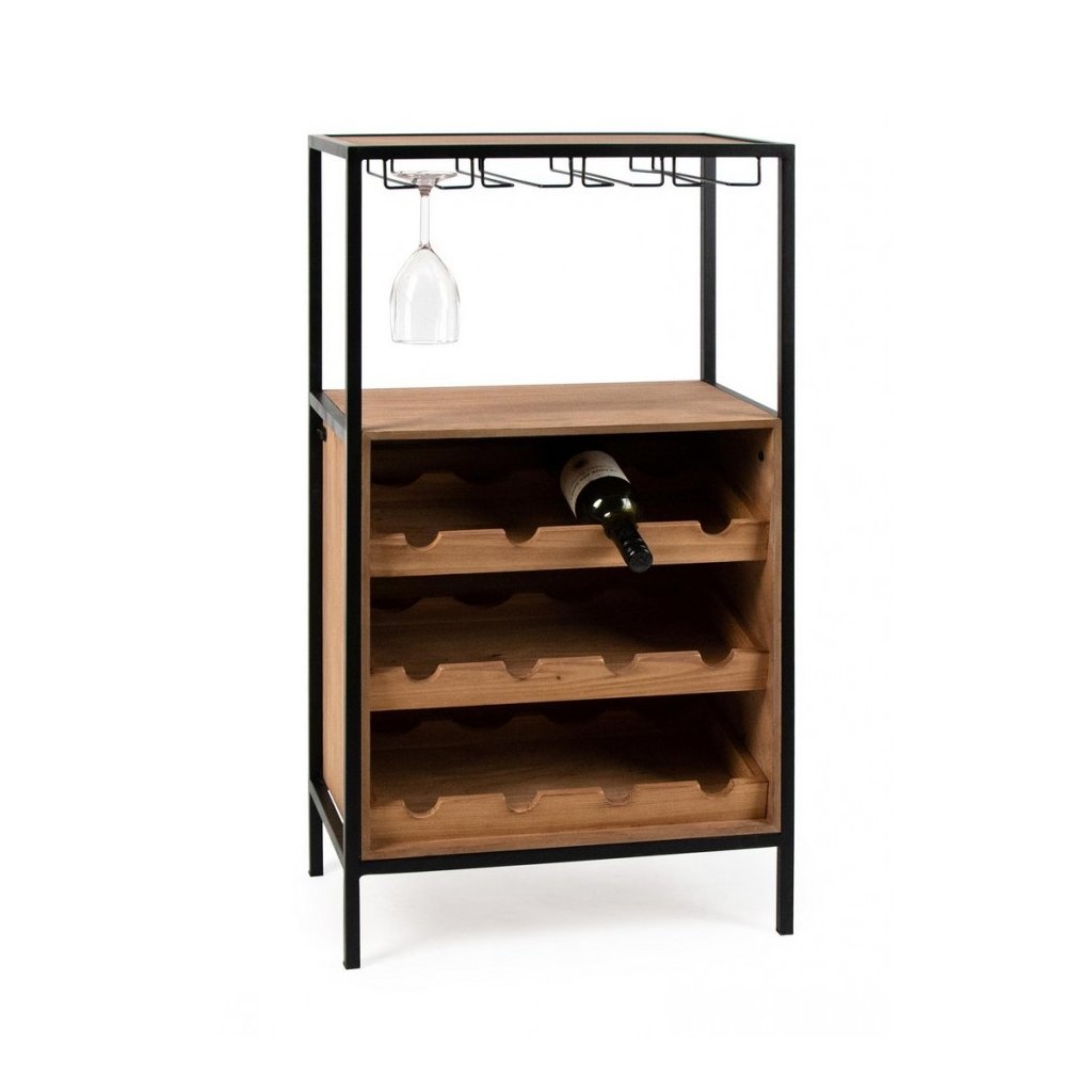Designový konzolový bar ISAAC od italského výrobce stylového nábytku BIZZOTTO. Stojan na víno/nápoje ISAAC má prostor až pro 12 lahví a prostor pro zavěšení skleniček. Vrchní police nabízí pěknou možnost prezentace speciálního skla či jiných doplňků. Bar je vyroben z mdf a černého práškovaného kovu a vytváří tak industriální atmosféru.