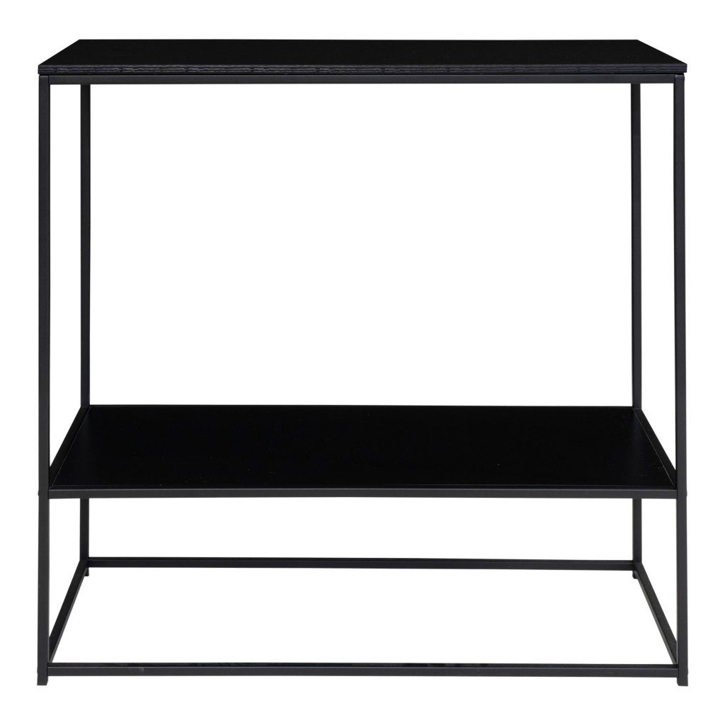 Kovový konzolový stolek VITA od dánské značky nádherného skandinávského nábytku HOUSE NORDIC. Stolek má konstrukci 80x80x36cm z tenkého kovu v černém laku, na než jsou položeny 2 police z tenké černé desky s melaminovou fólií, na které můžete směle vyskládat svoje vázy, květiny či jiné dekorace a zkrášlit tím tak svůj domov. Dokonalý pár vykouzlíte například s knihovnou řady VITA.