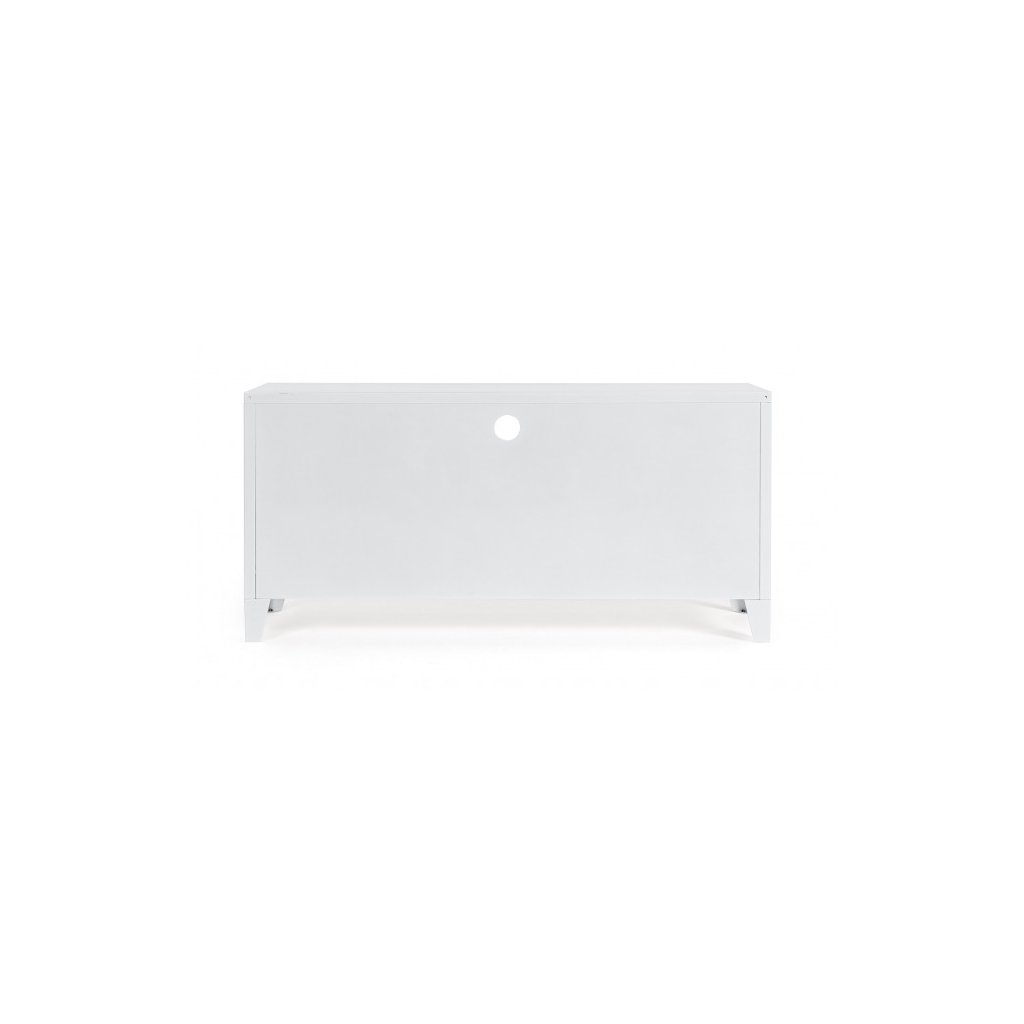 Designový TV stolek CAMBRIDGE od italského výrobce stylového nábytku BIZZOTTO z oceli s epoxidovou práškovou barvou v bílém provedení.