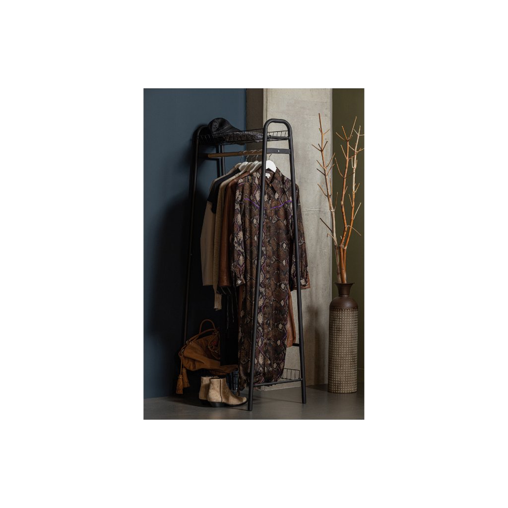 Jednoduchý, ale velmi zajímavý, praktický a krásný výrobek. Využijete nejlépe ve vaší ložnici, pokoji, šatně nebo třeba vstupní chodbě například v industriálním stylu. Díky černé barvě krásně vynikne především ve světlém, tak ale i tmavém interiéru.