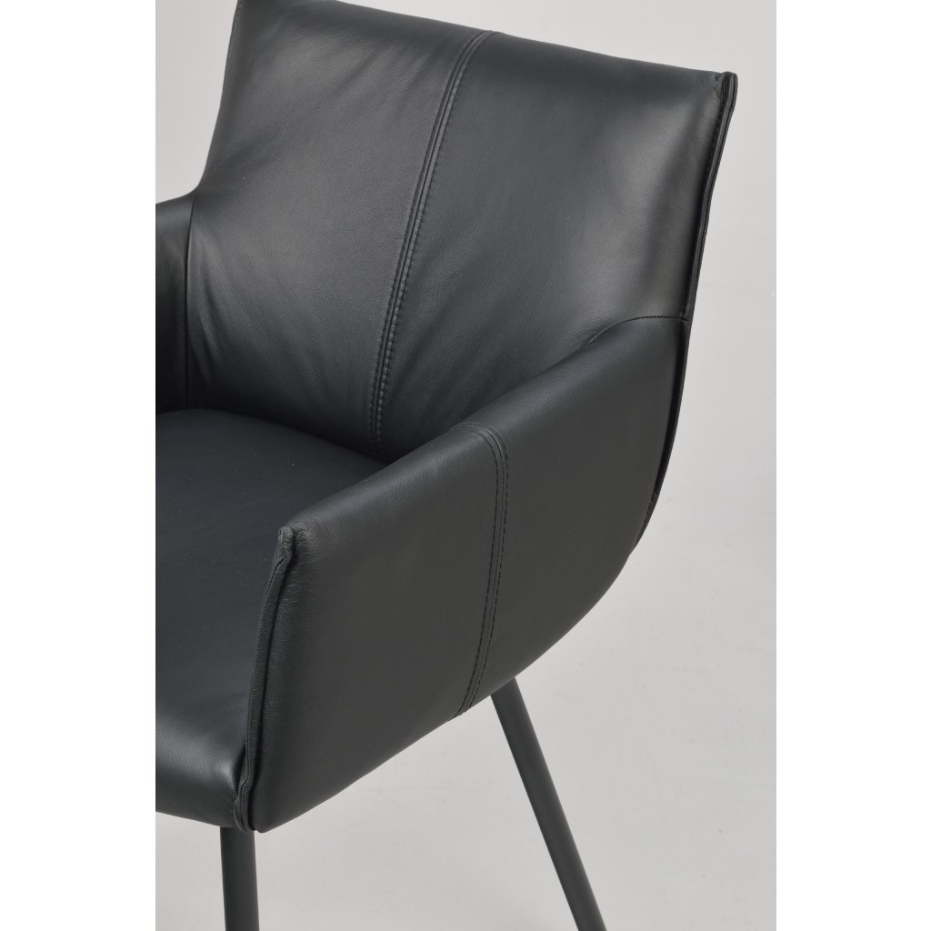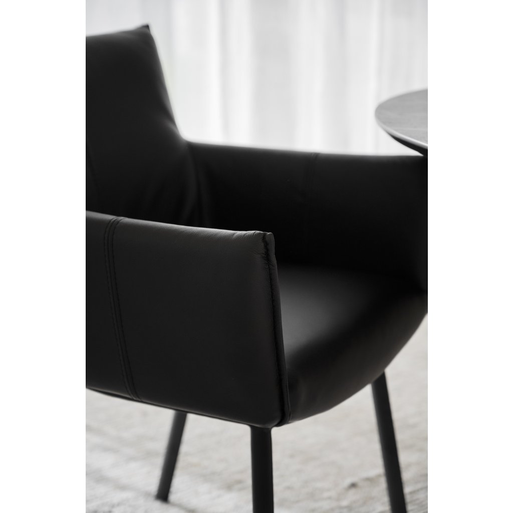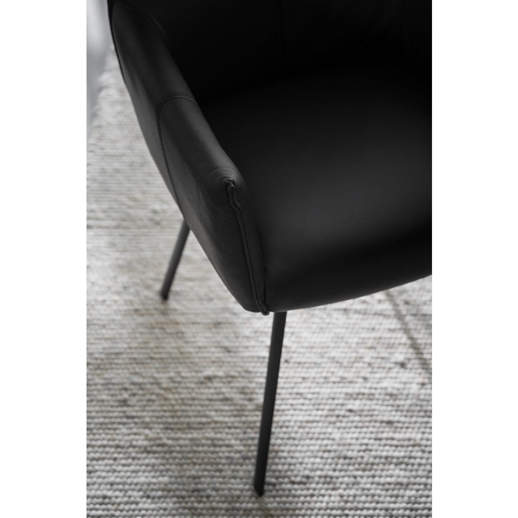Designová kožená jídelní židle s područkami HINCKLEY od švédského designového výrobce kvalitního dřevěného nábytku ROWICO. Židle je vyrobena z černé kůže s kovovými nohami s černým práškovým nástřikem. Díky své vysoké kvalitě, pohodlnému sezení a detailům s prošíváním okrajů ji lze používat po celé generace. Lze ji využít jako jídelní židli ke stolu nebo také jako křeslo vedle pohovky.