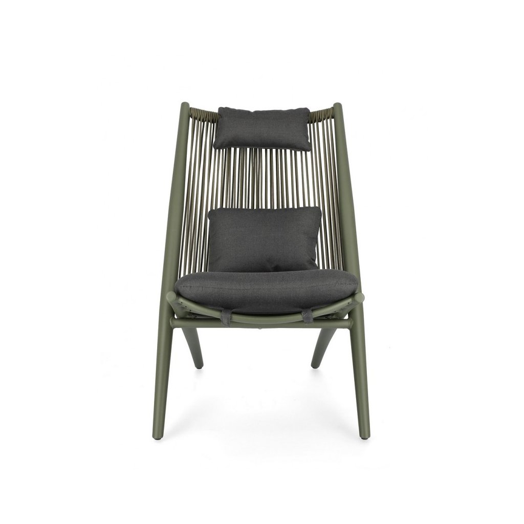 Designové křeslo ALOHA od italské firmy stylového nábytku BIZZOTTO s rámem z hliníku a polyesterovým potahem v zelené barvě.