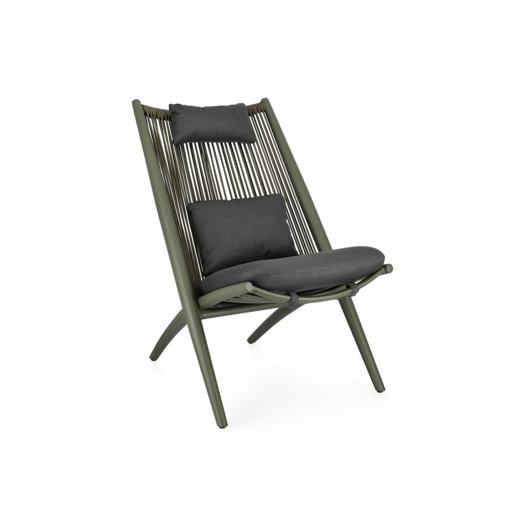 Designové křeslo ALOHA od italské firmy stylového nábytku BIZZOTTO. Křeslo ALOHA je tvořeno rámem ze zeleného hliníku, polyesterovým potahem a výplní z polyuretanu. Hliníková konstrukce zajišťuje křeslu maximální stabilitu, nosnost a pevnost. Opěradlo křesla má poutavý, proutěný design. Pro maximální pohodlí vám poslouží polštářek pod hlavou i za zády. Potah je vodoodpudivý a odolný vůči UV záření. Originalita, jedinečnost a elegance dokonale vystihuje křeslo ALOHA.