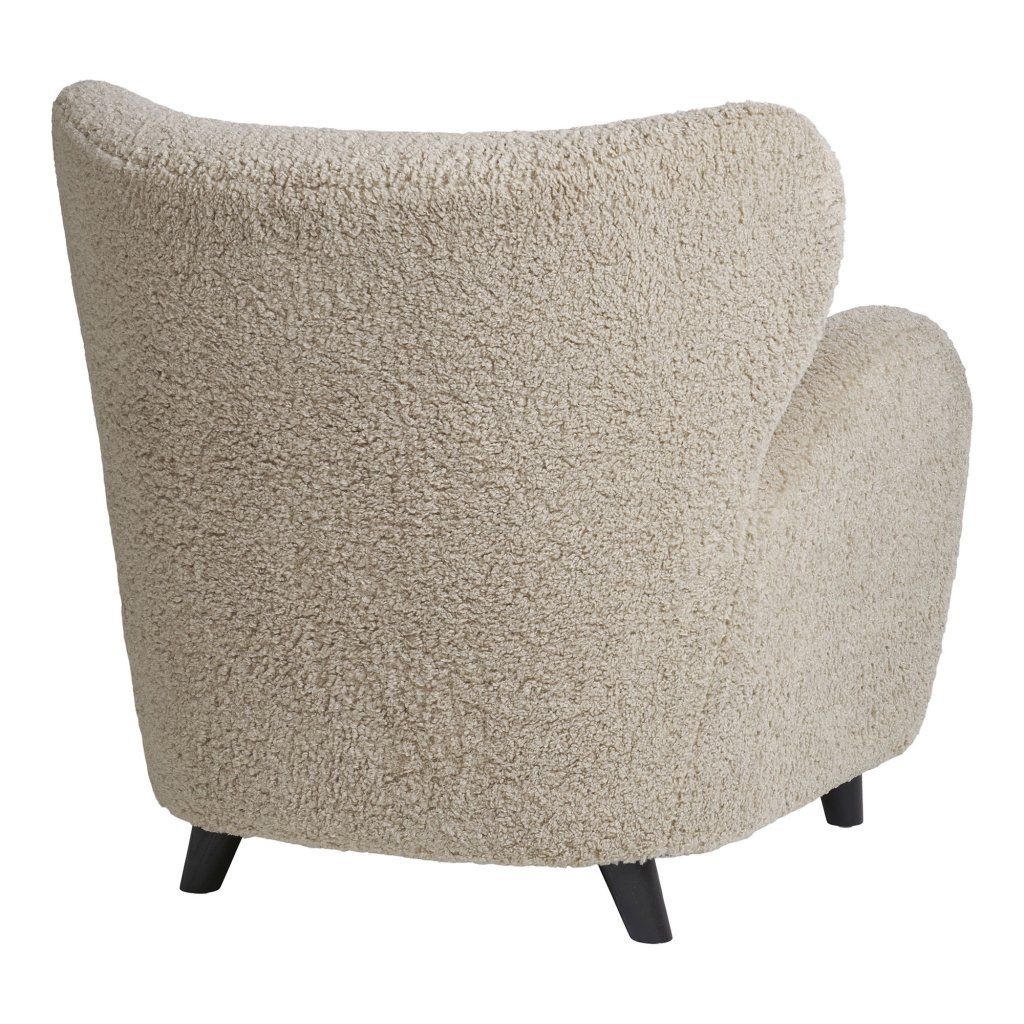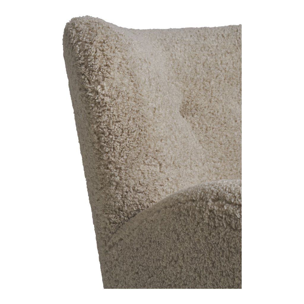 Krásné křeslo CARLINO od dánského výrobce nádherného nábytku HOUSE NORDIC. Křeslo CARLINO je dodáváno s rámem z masivního dřeva a překližky. Následně je rám pokryt polyuretanovou pěnou HN1265 a bouclé látkou ve světle hnědé barvě. Na konci jsou pak tmavě hnědé nohy. Křeslo má krásnou opěrku ve tvaru ušáku a příjemné oválné područky.