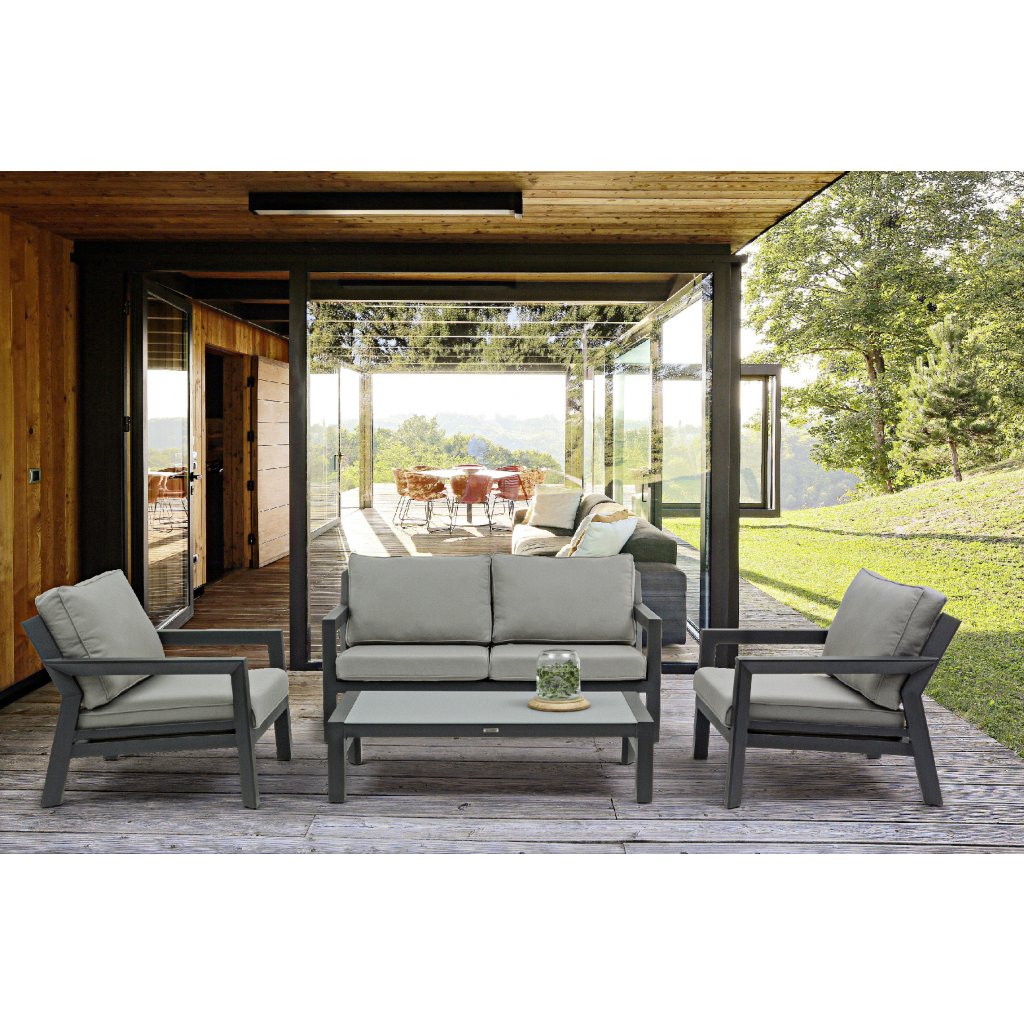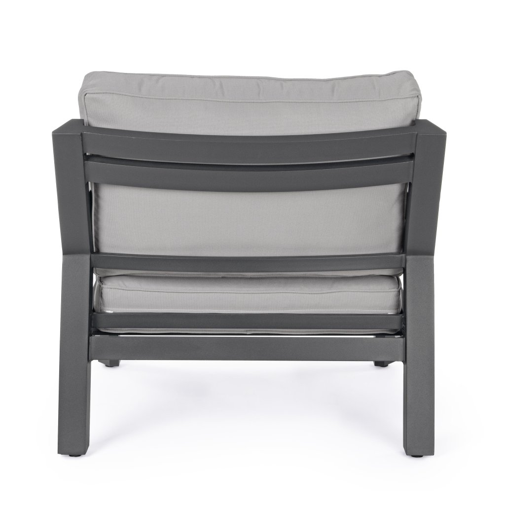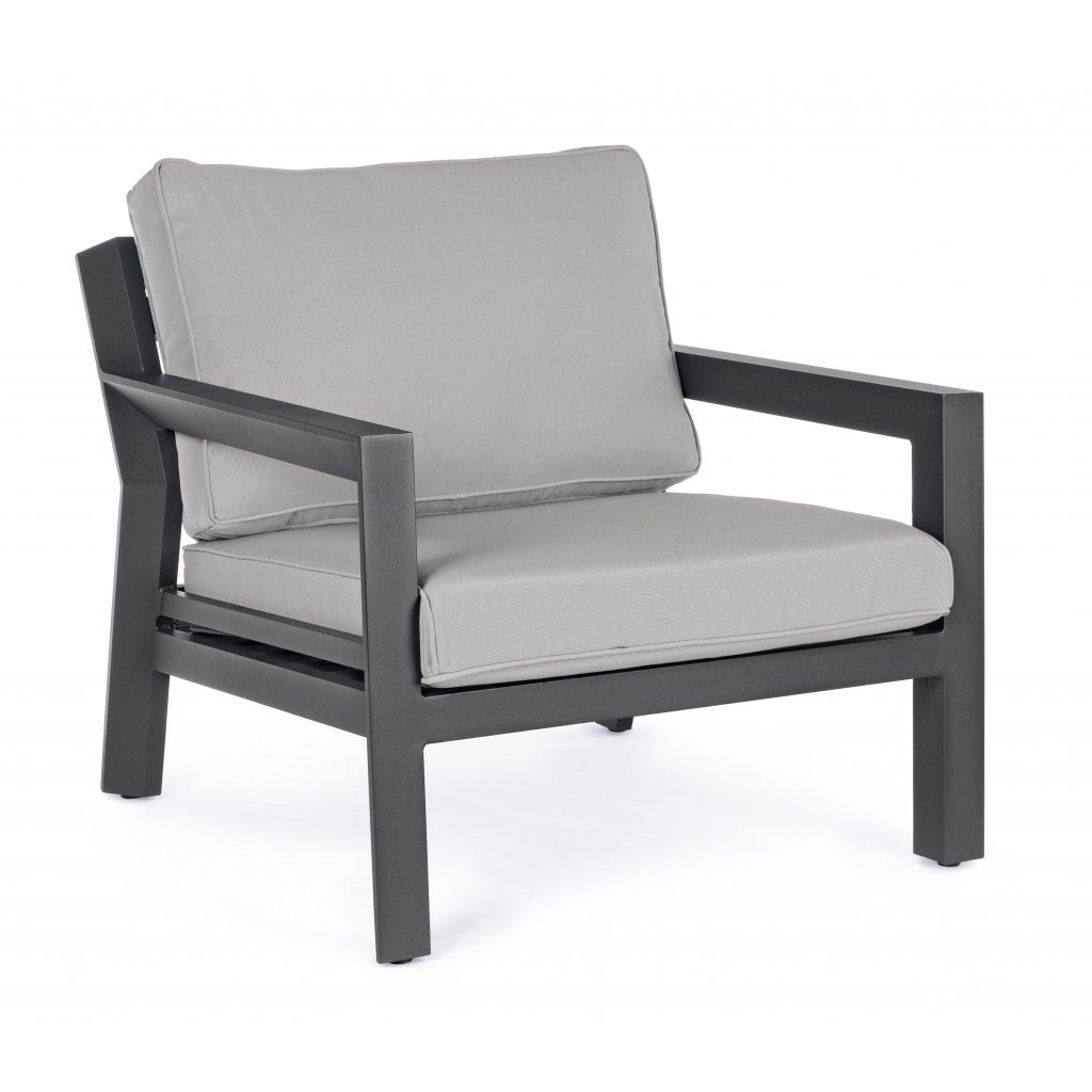 Designové křeslo QUENTIN od italské firmy stylového nábytku BIZZOTTO tvořeno hliníkovým rámem a odnímatelnými polštáři.