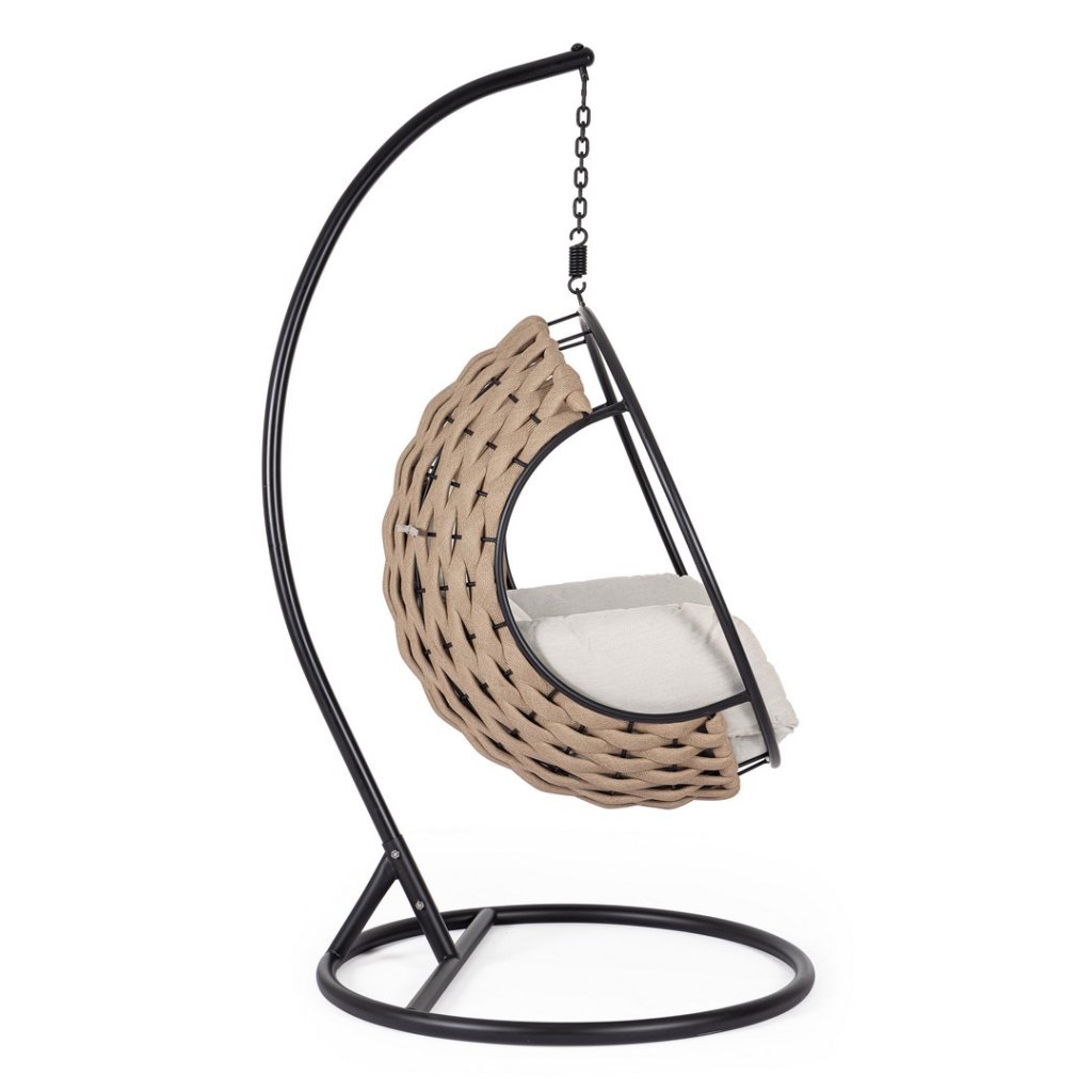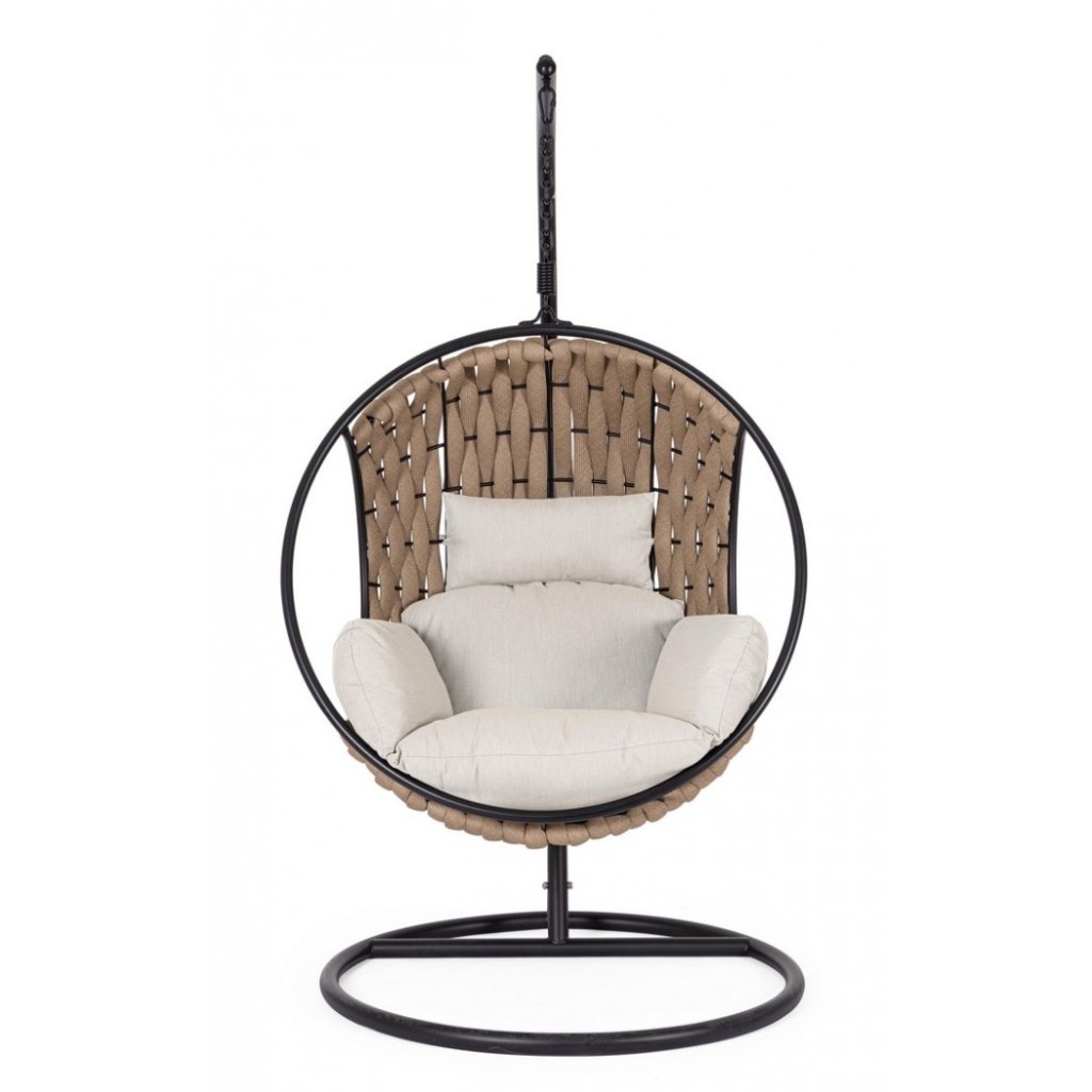 Designové závěsné křeslo GALAPAGOS od italského výrobce stylového nábytku BIZZOTTO. Křeslo GALAPAGOS je vyrobeno z ocelové konstrukce v černé barvě. Konstrukci doplňuje pohodlný kulatý sedák v hnědé barvě. Křeslo je zavěšeno na robustním podstavci, takže o jeho stabilitu se není třeba obávat. Maximální pohodlí vám zaručí vyjímatelný světlý polštář z vodoodpuzující látky. Ideální doplněk pro vaši zahradu nebo balkon. Křeslo přímo stvořeno pro vaši relaxaci.