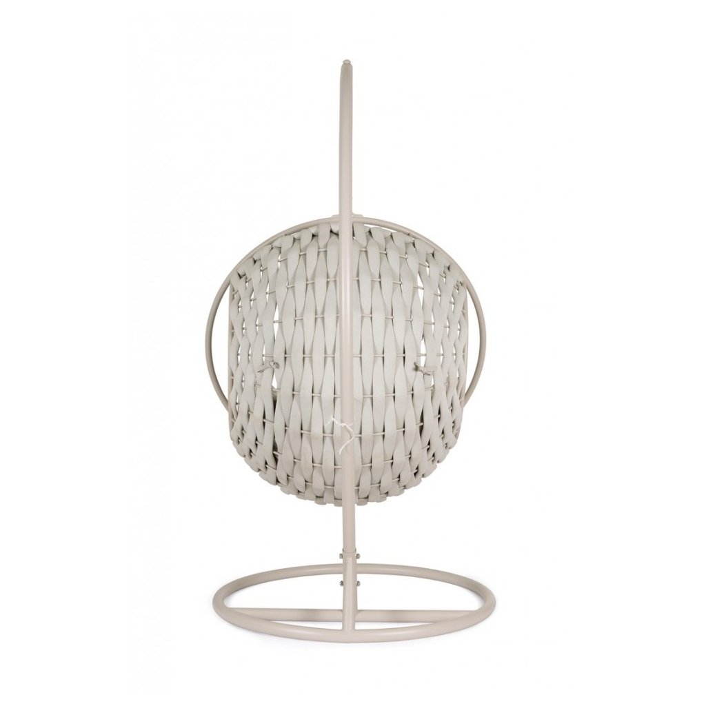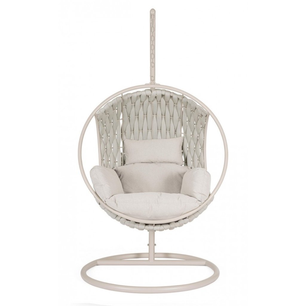 Designové závěsné křeslo GALAPAGOS od italského výrobce stylového nábytku BIZZOTTO. Křeslo GALAPAGOS je vyrobeno z ocelové konstrukce ve světlé barvě. Světlou konstrukci doplňuje pohodlný kulatý sedák v béžovém odstínu. Křeslo je zavěšeno na robustním podstavci, takže o jeho stabilitu se není třeba obávat. Maximální pohodlí vám zaručí vyjímatelný polštář z vodoodpuzující látky. Ideální doplněk pro vaši zahradu nebo balkon. Křeslo přímo stvořeno pro vaši relaxaci.