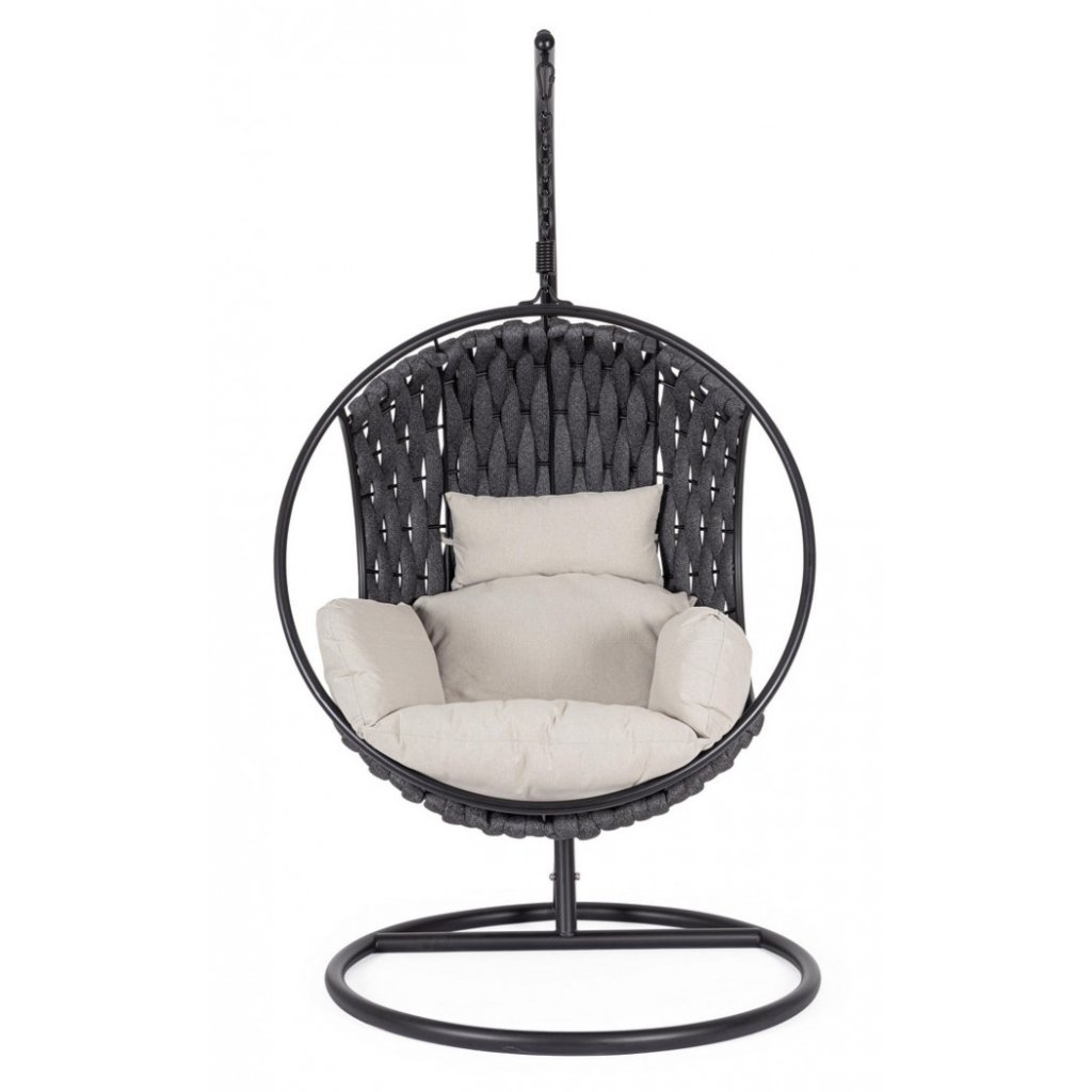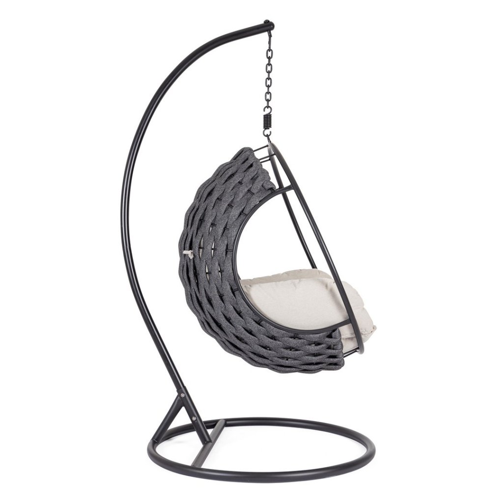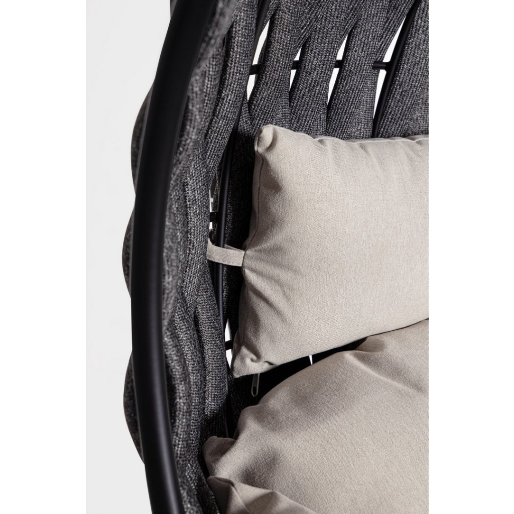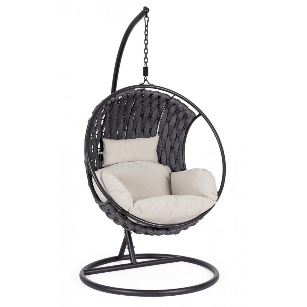 Designové závěsné křeslo GALAPAGOS od italského výrobce stylového nábytku BIZZOTTO. Křeslo GALAPAGOS je vyrobeno z ocelové konstrukce v černé barvě. Konstrukci doplňuje pohodlný kulatý sedák v tmavém odstínu. Křeslo je zavěšeno na robustním podstavci, takže o jeho stabilitu se není třeba obávat. Maximální pohodlí vám zaručí vyjímatelný polštář z vodoodpuzující látky v béžové barvě. Ideální doplněk pro vaši zahradu nebo balkon. Křeslo přímo stvořeno pro vaši relaxaci.