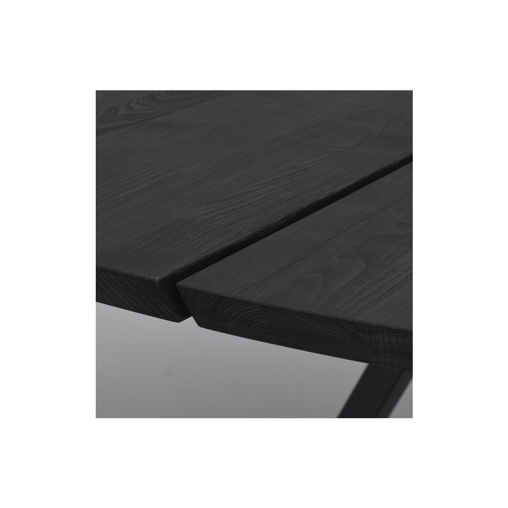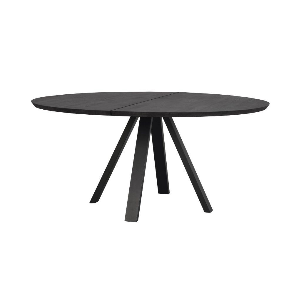 Kulatý jídelní stůl CARRADALE od švédského výrobce designového nábytku ROWICO. Stůl CARRADALE tvoří černě lakované kovové nohy, které zajišťují maximální stabilitu, nosnost a pevnost. Kulatá deska stolu je ze 2 částí masivního dubového dřeva v černé barvě. Deska má průměr 150 centimetrů. Stylový kulatý stůl udělá velkou parádu zejména v menších prostorech. Stůl má certifikát FSC, což značí ekologicky získané dřevo.