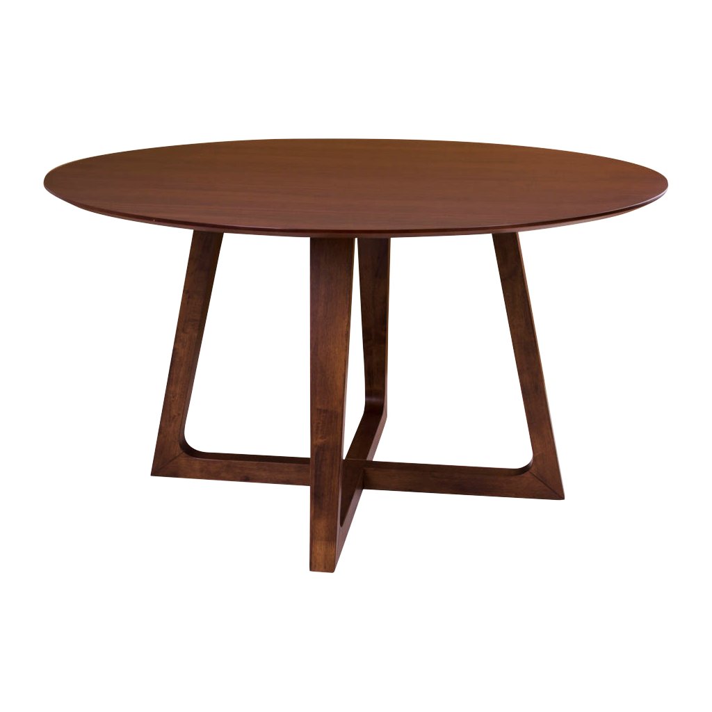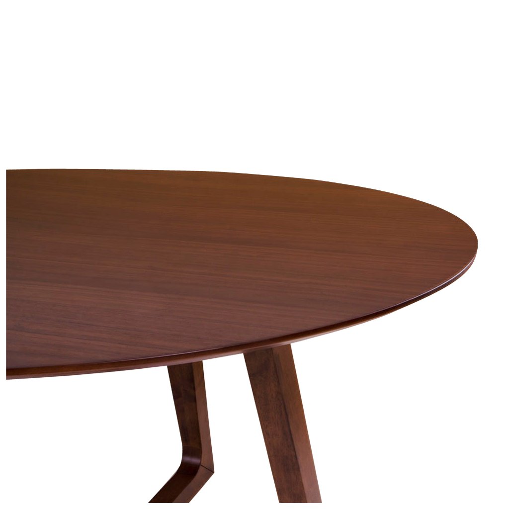 Designový kulatý jídelní stůl HELLERUP od dánské značky nádherného skandinávského nábytku HOUSE NORDIC . Stůl se skládá z krásné kulaté desky s průměrem 137cm vyrobené z dřevovláknité mdf desky a hnědé dýhy kaštanového dřeva. Z desky vystupují 4 masivní nohy, které jsou navzájem propojeny, což vytváří vskutku nádherný a stylový výrobek.