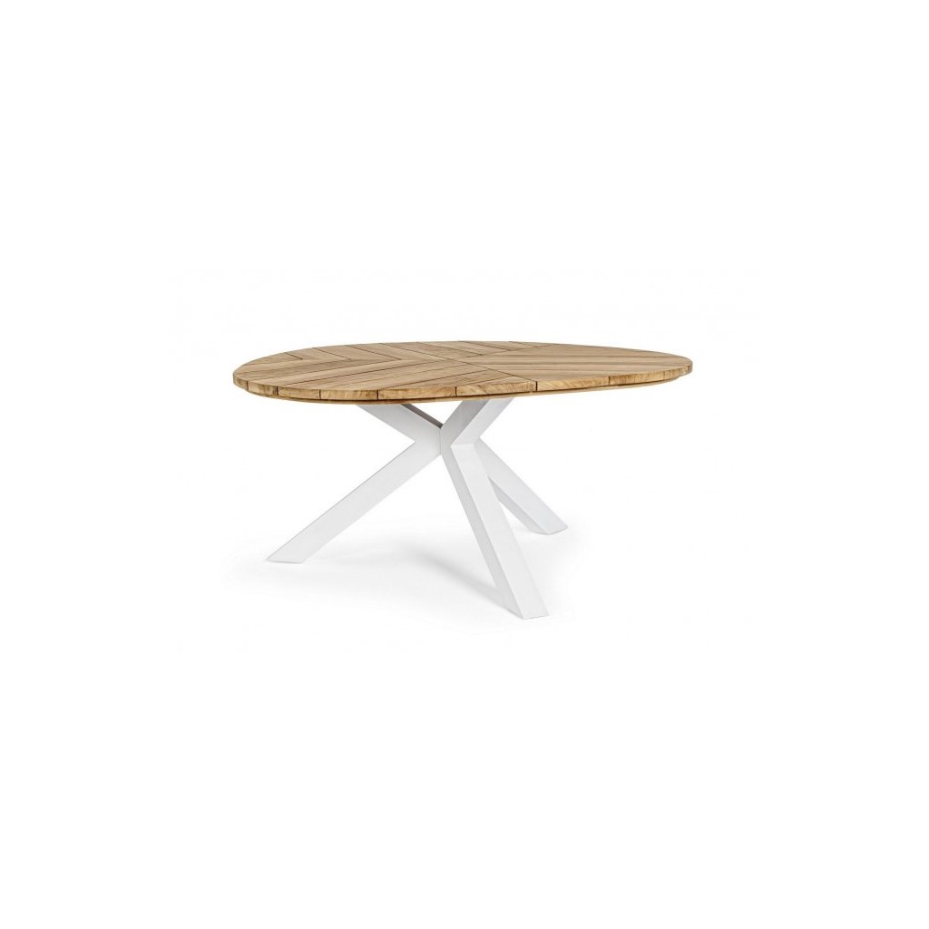 Designový kulatý jídelní stůl PALMDALE od italského výrobce stylového nábytku BIZZOTTO. PALMDALE je velmi zajímavý kousek a je vyrobený z více materiálů. Vrchní deska je z teakového dřeva s průměrem 160 cm v přírodní hnědé barvě. Nastavitelné bílé nohy jsou vyrobeny z hliníku s práškovým nátěrem. Ke stolu se vejde až osm lidí.