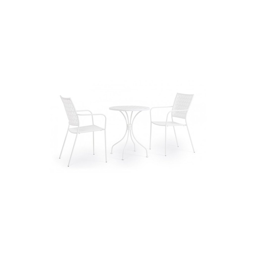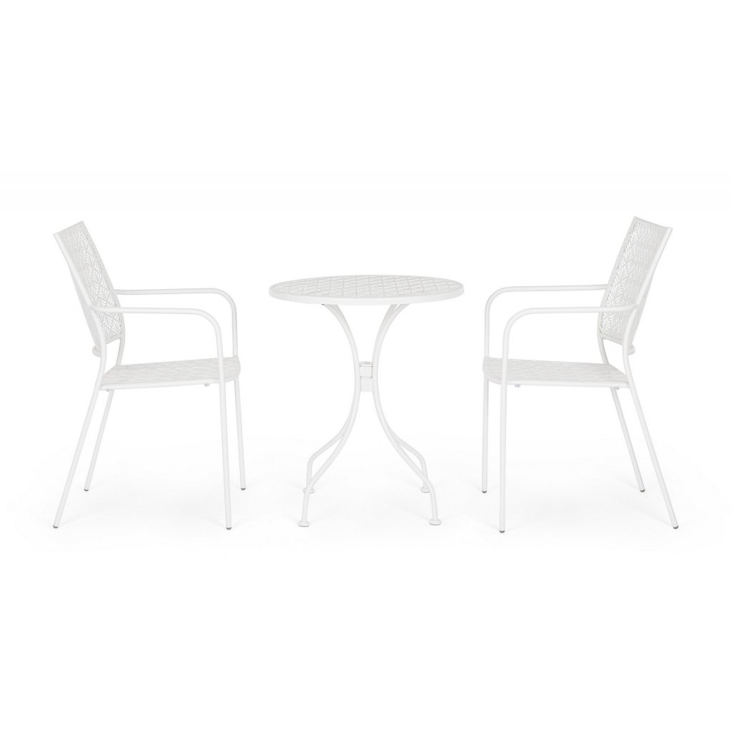 Nádherný kovový zahradní stolek LIZETTE od italského výrobce stylového nábytku BIZZOTTO. Krásný a jednoduchý kulatý stolek je v provedení bílého kovu, složen ze 2 částí a to 4-nohé konstrukce kovové vzorované desky. Díky kovové konstrukci je stolek velmi odolný a nemusíte mít obavu o jeho dlouhodobou kvalitu.