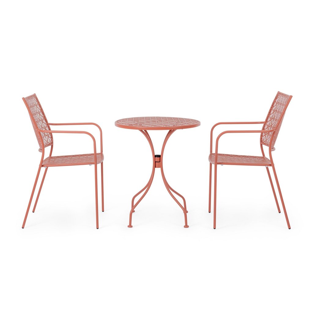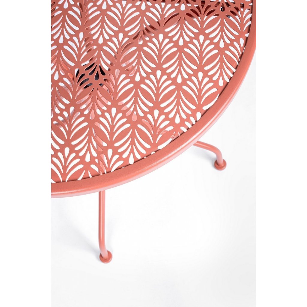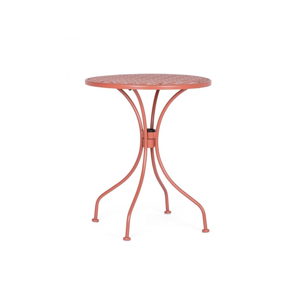 Nádherný kovový zahradní stolek LIZETTE od italského výrobce stylového nábytku BIZZOTTO. Krásný a jednoduchý kulatý stolek je v provedení červeno-oranžového kovu, složen ze 2 částí a to 4-nohé konstrukce kovové vzorované desky. Díky kovové konstrukci je stolek velmi odolný a nemusíte mít obavu o jeho dlouhodobou kvalitu.