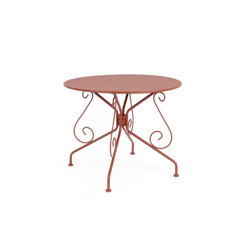 Nádherný kovový zahradní stolek ETIENNE od italského výrobce stylového nábytku BIZZOTTO v cihlovém odstínu.