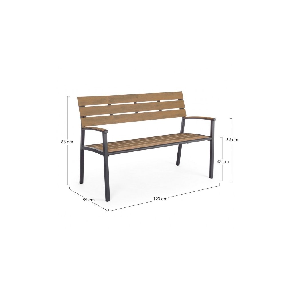 Stylová zahradní lavička ISAK od italského výrobce stylového nábytku BIZZOTTO v kombinaci černého hliníku a tmavého umělého dřeva.