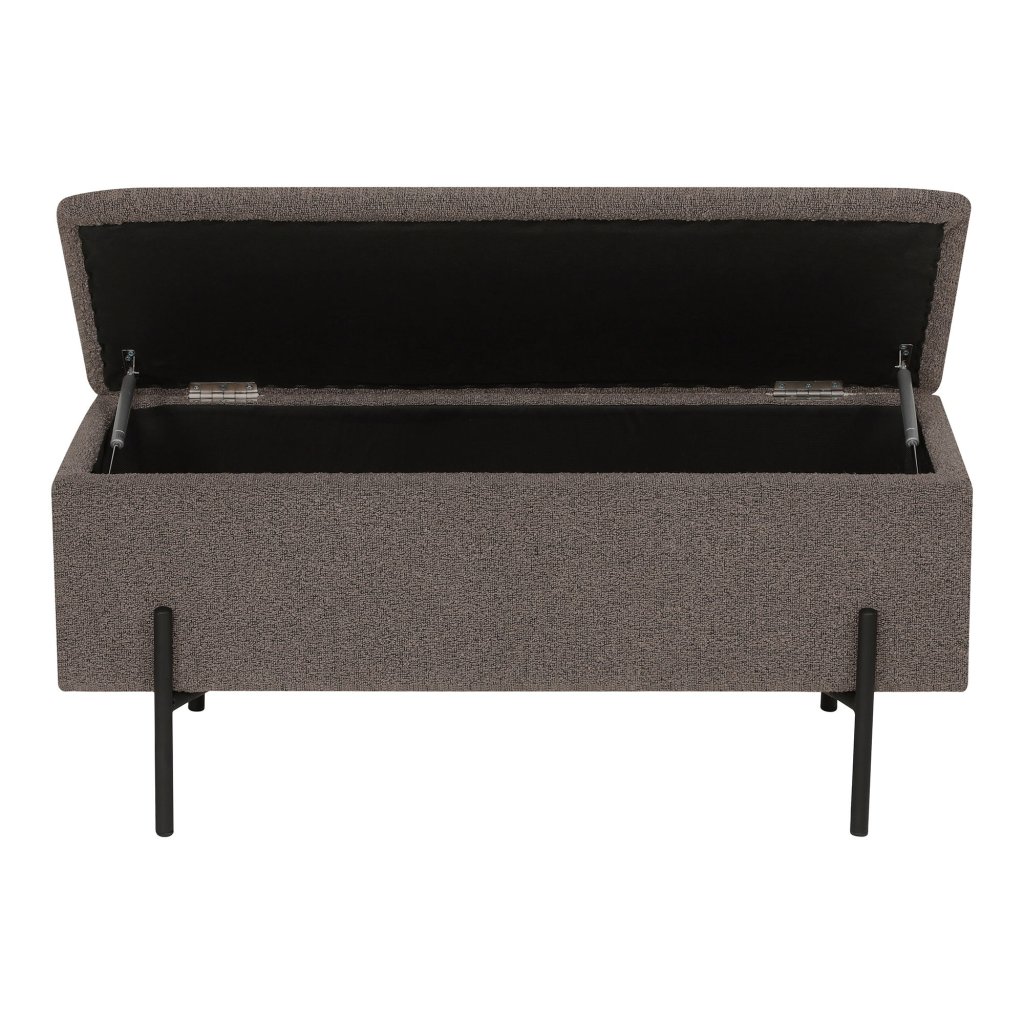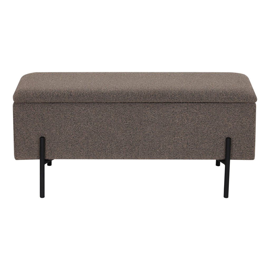 Designová lavice WATFORD s úložným prostorem od dánské značky nádherného skandinávského nábytku HOUSE NORDIC. Lavice má decentní černé kovové nohy, které postupně přechází do samotného těla lavice. Sedák je čalouněný jemnou buklé látkou v hnědém odstínu z polyesteru, která je příjemná na dotek a snadno se udržuje. Pevná konstrukce z FSC certifikované překližky zaručuje dlouhou životnost.