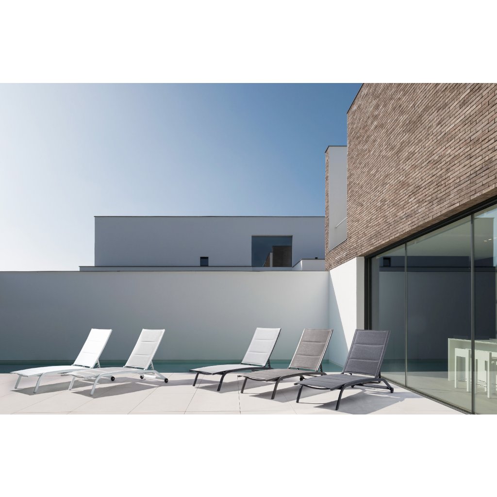 Designové venkovní lehátko CLEOPAS od italského výrobce stylového nábytku BIZZOTTO v provedení tmavě šedého práškového hliníku a syntetického vlákna.