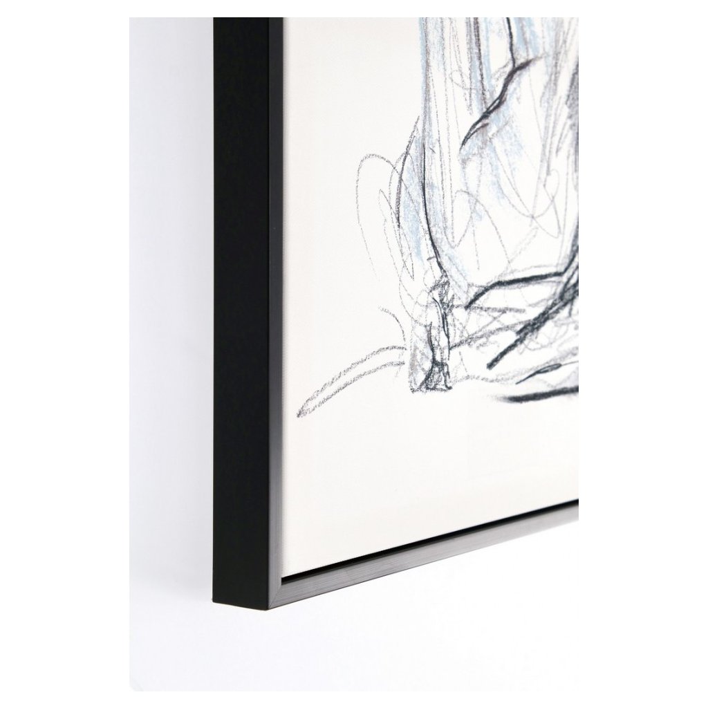 Tisk na plátně BODY od italského výrobce stylového nábytku a doplňků BIZZOTTO. Obraz BODY má rozměr 40x50 cm a jedná se o tisk na plátně, jenž je nataženo na konstrukci z borovicového dřeva a zarámováno černým plastovým rámem. Jde o v současnosti velmi populární skicu sedící ženské postavy pomocí několika čár.