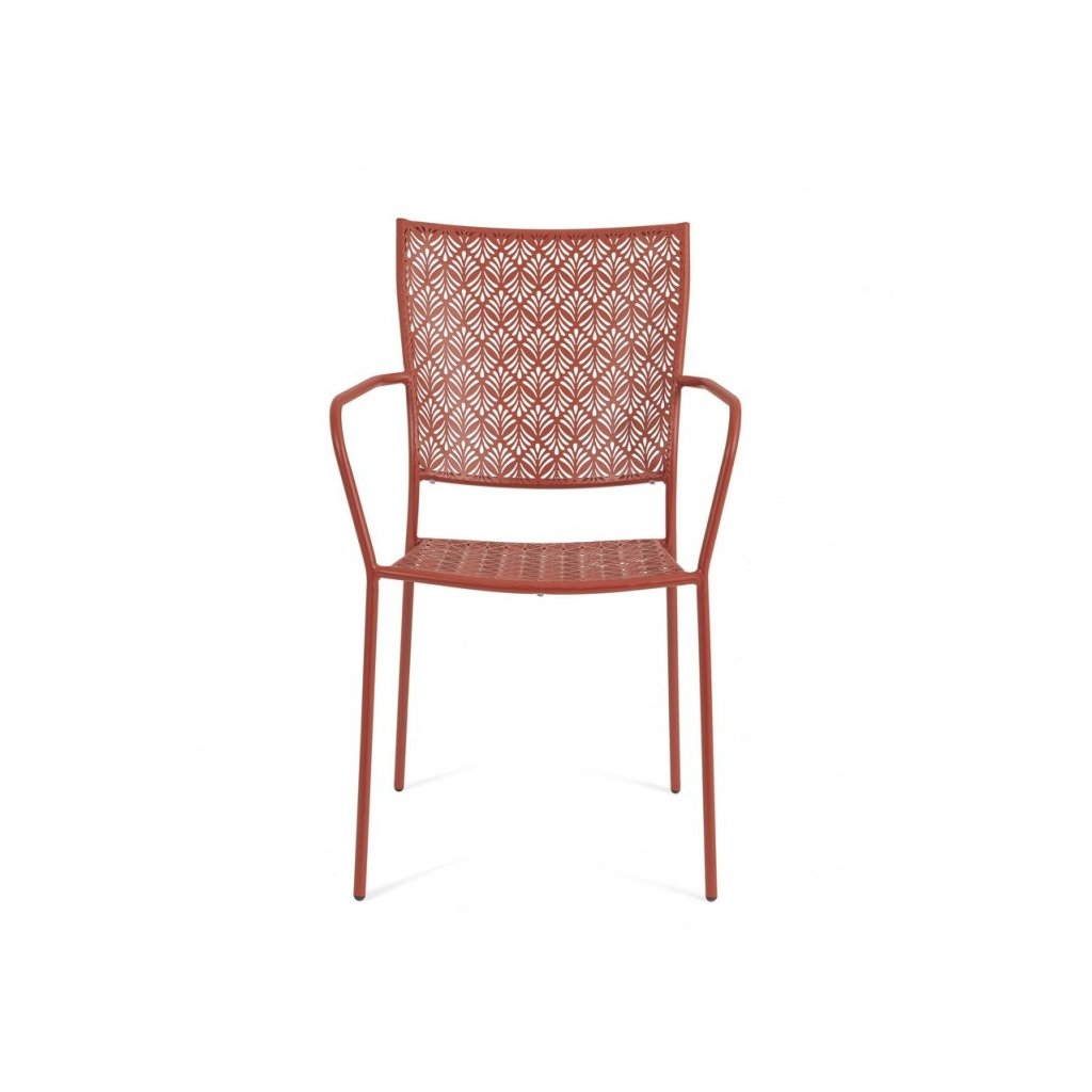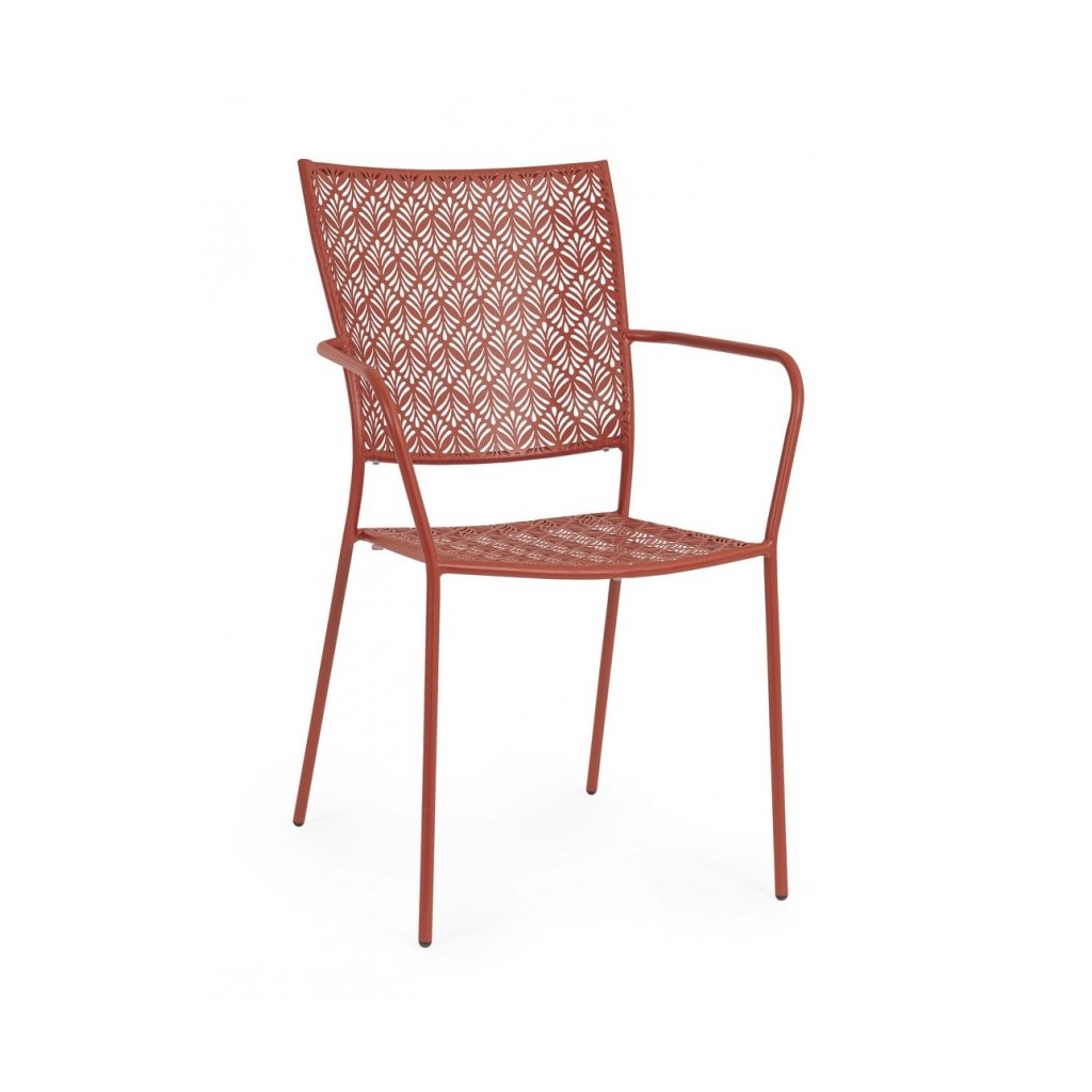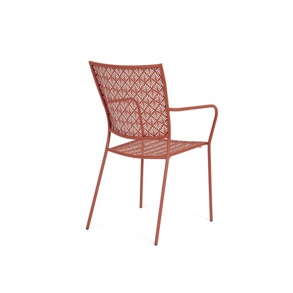 Designová stohovatelná venkovní kovová židle LIZETTE od italského výrobce stylového nábytku BIZZOTTO v krásném vzorovaném provedení cihlově lakovaného kovu.