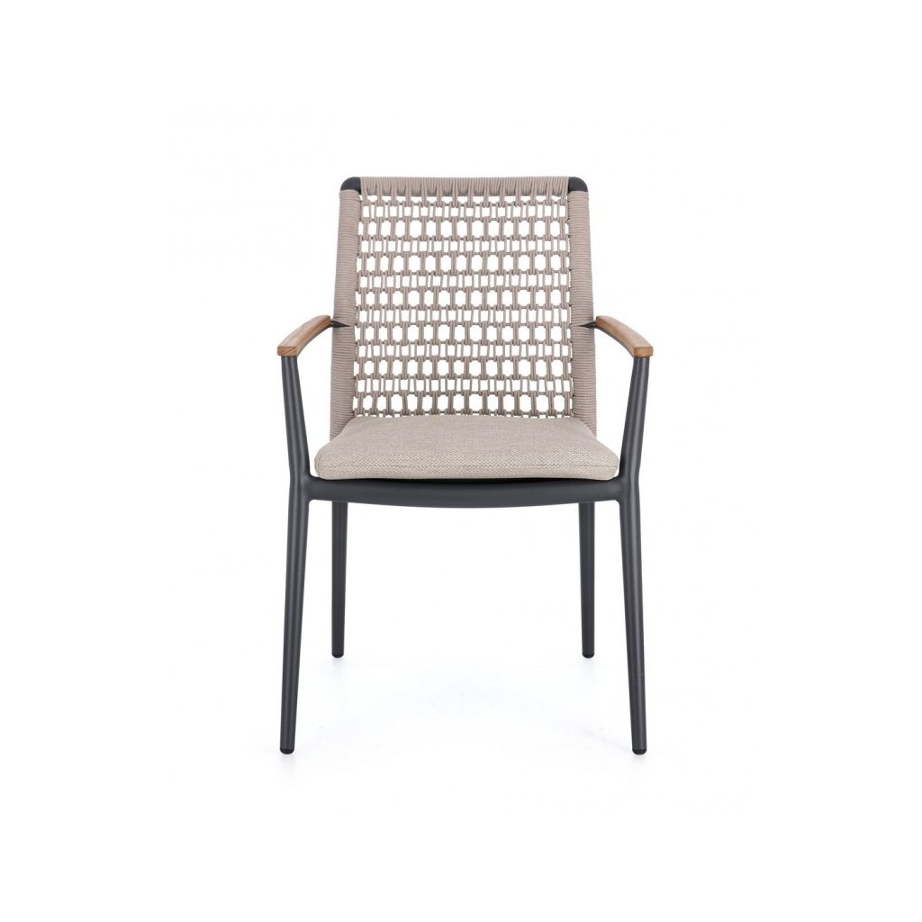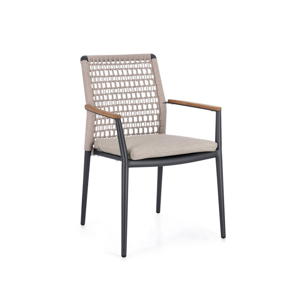 Designová zahradní židle MADDOX od italského výrobce stylového nábytku BIZZOTTO v kvalitním pevném hliníkovém provedení s tkanou opěrkou a vyjímatelným sedákem.