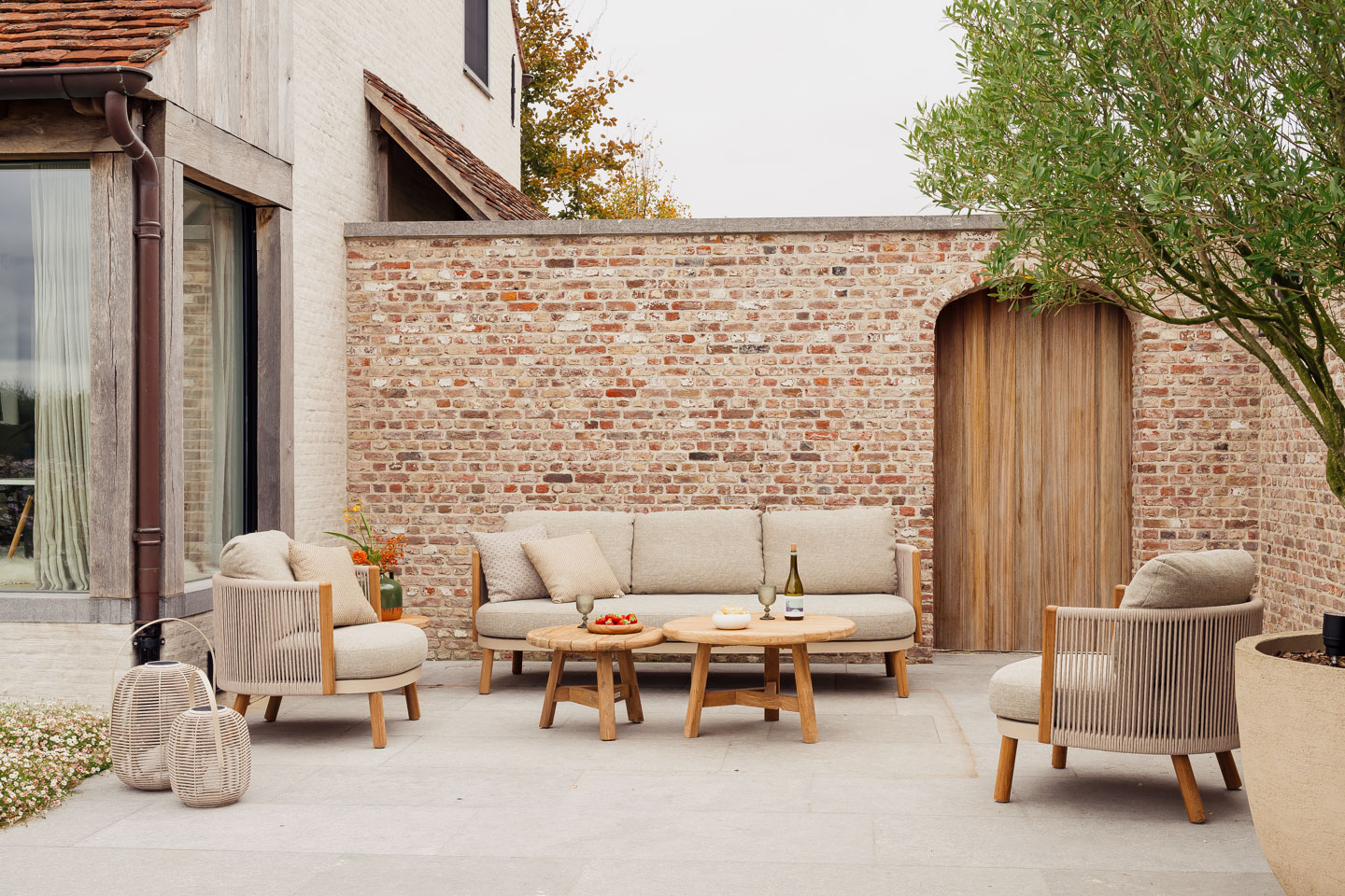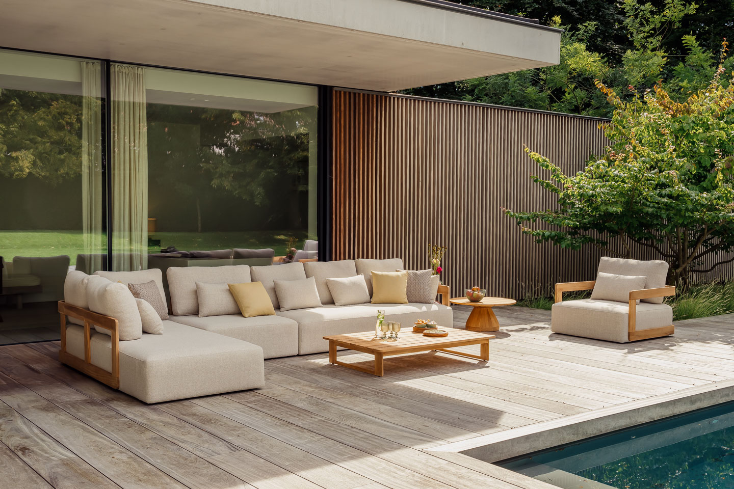 Trendy sestavy se navrhují tak, aby byly stejně komfortní jako interiér. Vyšší opěrky, hlubší sedáky, měkčí polstrování a textilie určené do exteriéru jsou letos standardem. Přibývá i nábytek, který funguje v obou světech, tedy designově čistý, ale odolný a vhodný ven.