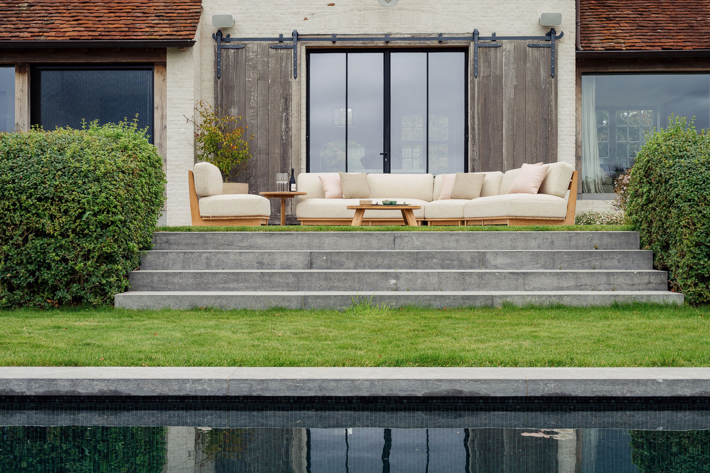 Nejsilnějším trendem je proměna venkovního prostoru na druhý obývací pokoj. Už nejde o jeden stůl a pár židlí, ale o kompletní zónu pro relax i setkávání. V praxi to znamená větší důraz na modulární pohovky, rohové sestavy, pohodlná lounge křesla a nižší stolky, které se dobře používají při posezení s kávou nebo večerním drinkem.