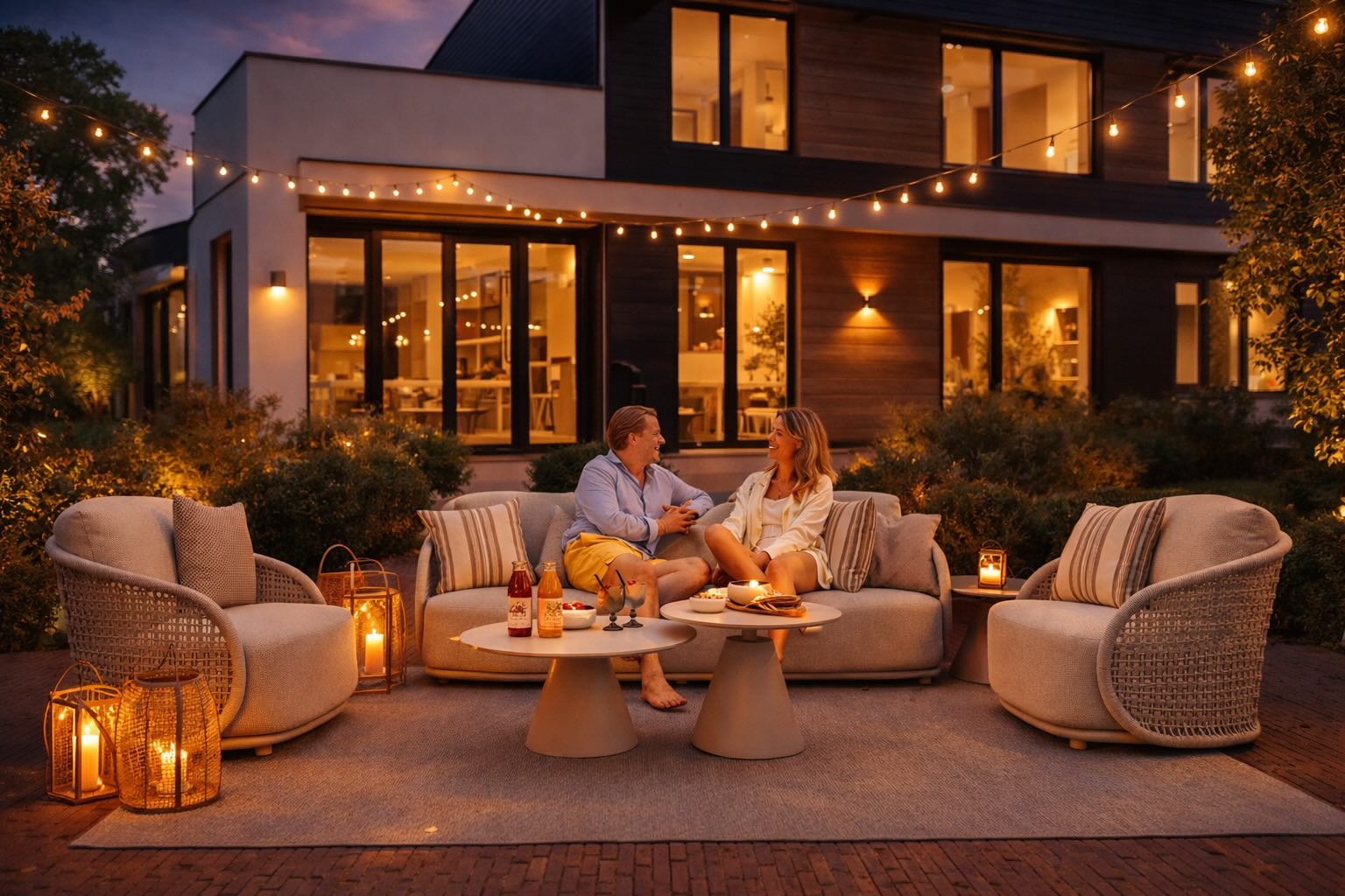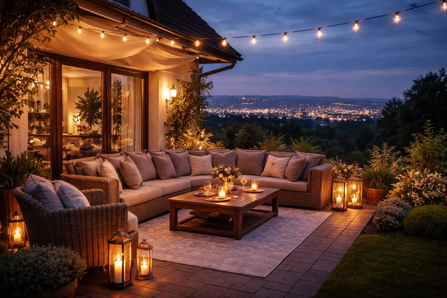 Nejdůležitější je kombinace pohodlného posezení, tlumeného osvětlení a textilií. Tyto prvky společně vytvoří příjemnou a uvolněnou atmosféru. Velkou roli hrají také rostliny a menší stolky, které prostor doplňují. Na večerní terasu je nejlepší teplé a nepřímé osvětlení. Ideální jsou stojací lampy, stolní lampy nebo lucerny, které vytvářejí jemné světlo. Silné centrální osvětlení většinou působí příliš ostře. Pro večerní posezení se nejlépe hodí pohodlné lounge sestavy, zahradní křesla nebo venkovní pohovky. Důležité jsou hlubší sedáky a měkké polštáře. Díky tomu bude posezení komfortní i při delším sezení. Terasa může fungovat jako druhý obývací pokoj, pokud přidáte pohodlný nábytek, textilie, menší stolky a příjemné osvětlení. Důležité je také vytvořit zónu pro setkávání a relax.Jak vytvořit útulnou atmosféru na zahradě večer?