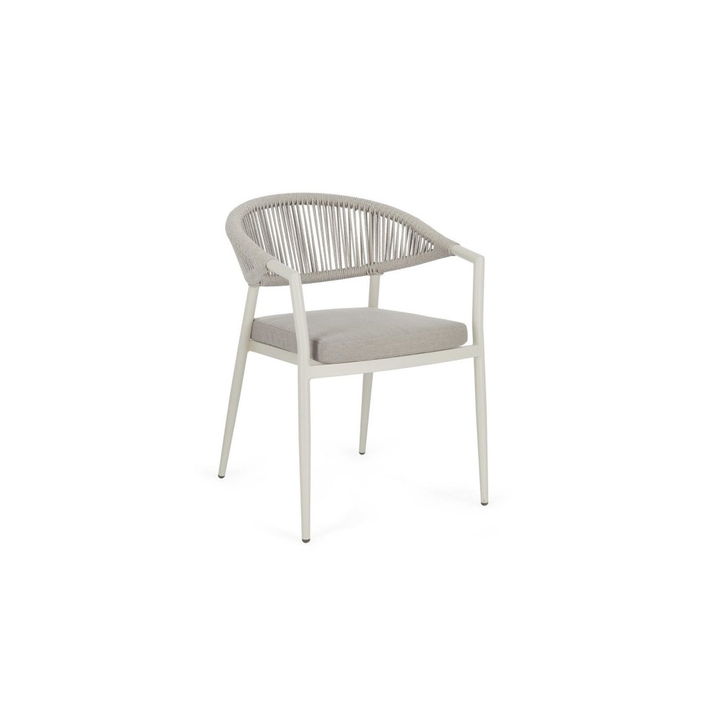 Designová venkovní židle MILLOR od italského výrobce stylového nábytku BIZZOTTO. Židli MILLOR tvoří konstrukce z hliníku a opěrka tkaná z polyesterového vlákna. Kovová konstrukce zajišťuje židli maximální stabilitu a nosnost. Vyjímatelný sedák je vyroben z vodoodpudivého polyesteru. Židle jsou stohovatelné. MILLOR je velmi krásné, unikátní a luxusní jídelní křesílko.