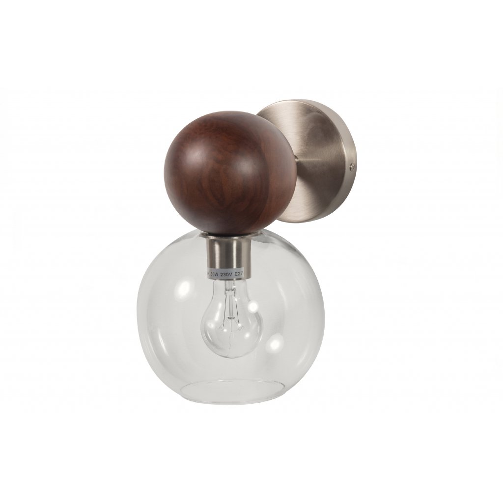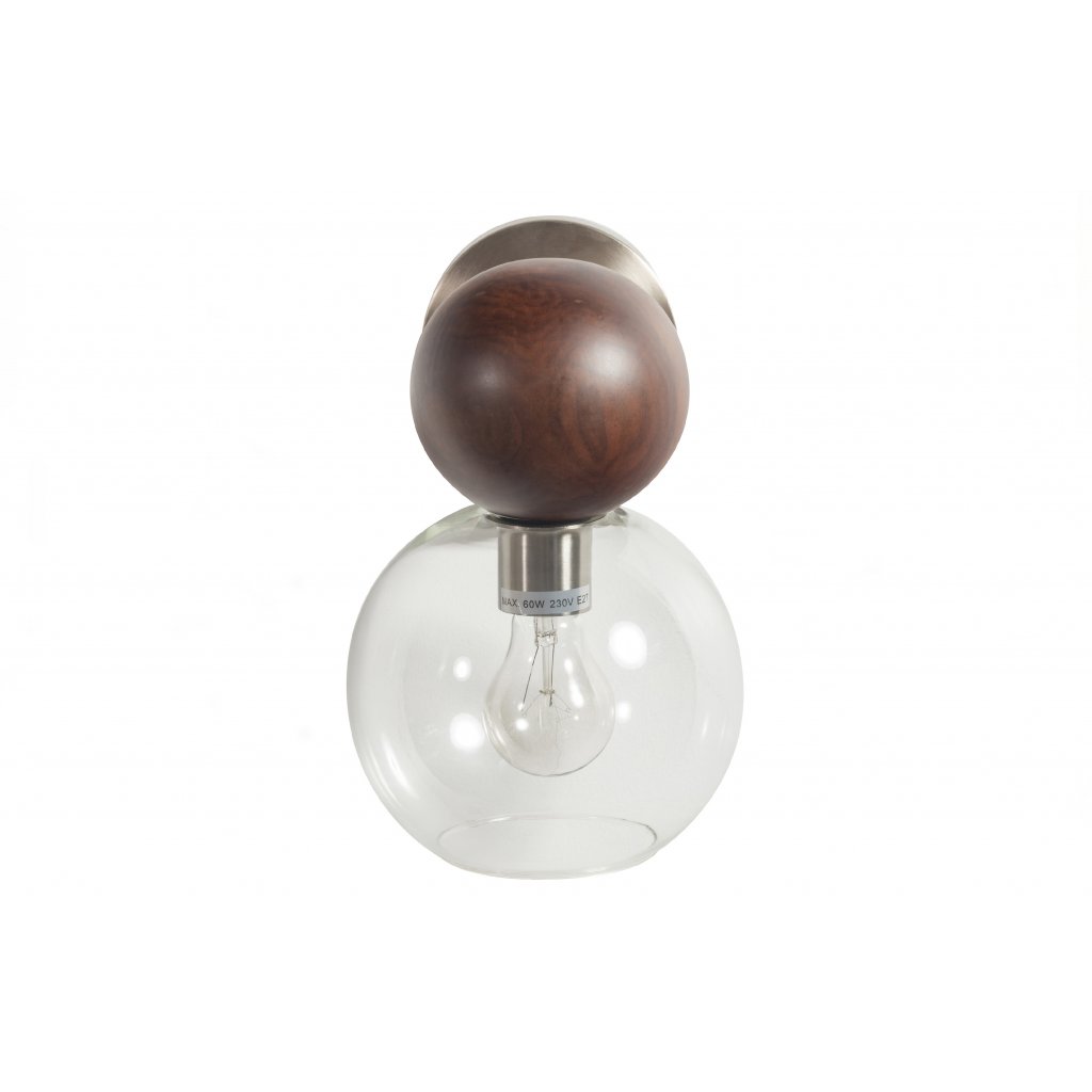 Designová nástěnná lampa BABBLE od holandského výrobce kvalitního nábytku BePureHome. BABBLE je velmi stylová lampa s dřevěnými prvky. Svítidlo tvoří dřevěná koule a následně skleněné stínidlo. Průhledné sklo stínidla zajišťuje jasné, 360stupňové rozptýlení světla. Teplé ořechové dřevo dodává této sérii lamp pravý retro styl.