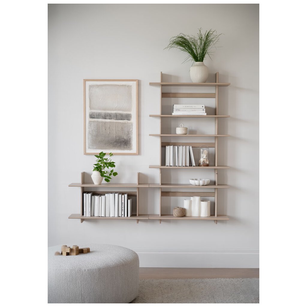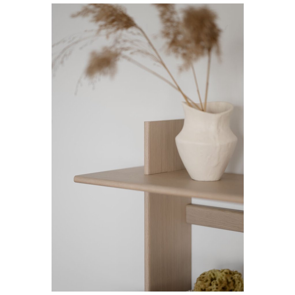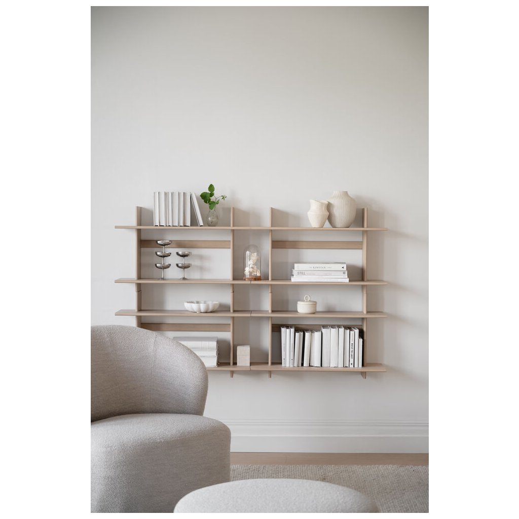 Nástěnná police WESTLOCK od švédského designového výrobce dřevěného nábytku ROWICO. Nástěnná police se dvěma úrovněmi je více než jen praktický úložný prostor. Je to výrazný designový prvek, který okamžitě dodá místnosti styl a charakter. Její jednoduchý a čistý tvar v kombinaci s běleným dubem přináší do interiéru teplý, moderní a přirozený výraz, který se hodí do široké škály stylů. Police působí vzdušně a elegantně, ať už ji využijete samostatně, nebo zkombinujete víc kusů a vytvoříte výraznou nástěnnou kompozici. Díky svému nadčasovému zpracování se hodí pro vystavení dekorací, knih, nebo každodenních drobností. WESTLOCK je vyrobena z FSC certifikovaného dřeva, což z ní činí estetickou i udržitelnou volbu pro každý domov.