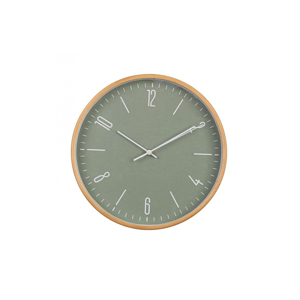 Stylové nástěnné hodiny CLANCY od italského výrobce stylového nábytku BIZZOTTO v kombinaci dřevěného rámu a zeleného ciferníku.