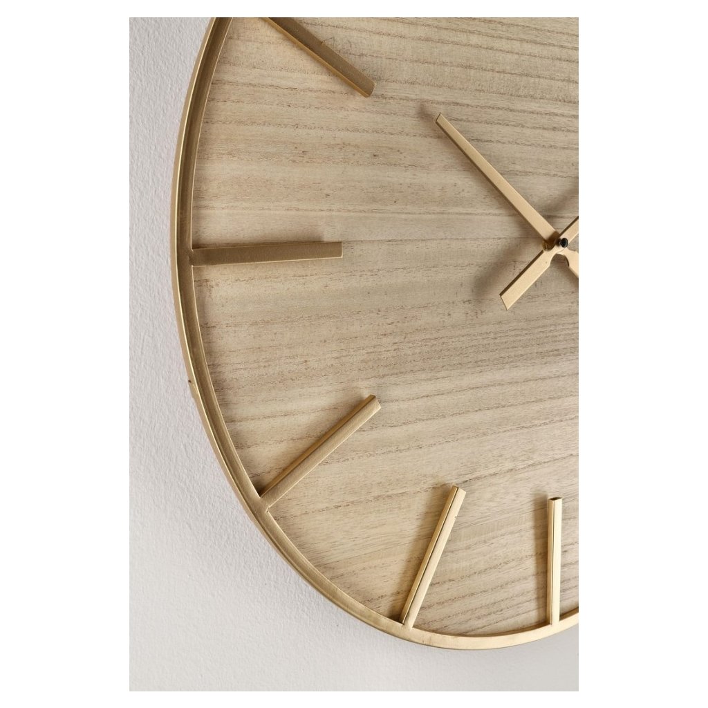 Stylové nástěnné hodiny KYLAN od italského výrobce stylového nábytku BIZZOTTO v kombinaci zlatého kovu a dřeva.