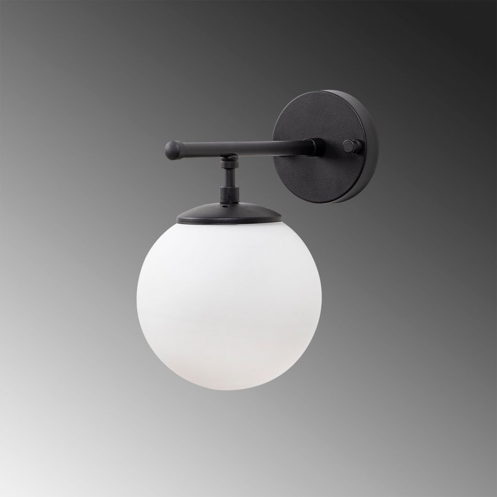 Nádherné nástěnné osvětlení ROE od výrobce stylového osvětlení OPVIQ. Svítidlo ROE tvoří kovová krytka, ukrývající uchycení a elektrické kabely, ke které je připevněna kovová tyč. Z tyče je kolmo dolu přichycen držák a objímka pro žárovku a koule z mléčného bílého skla. Vše vyrobeno v kovovém provedení s elegantní černou barvou.