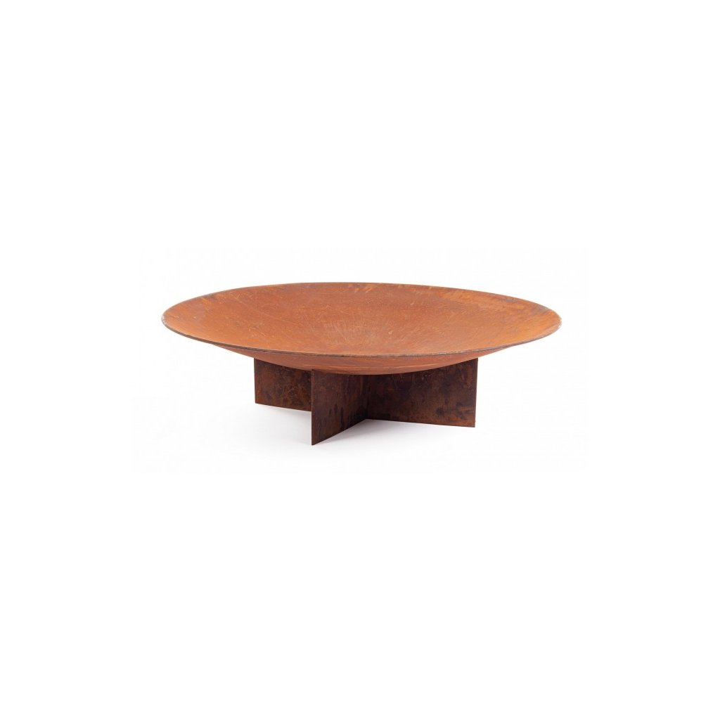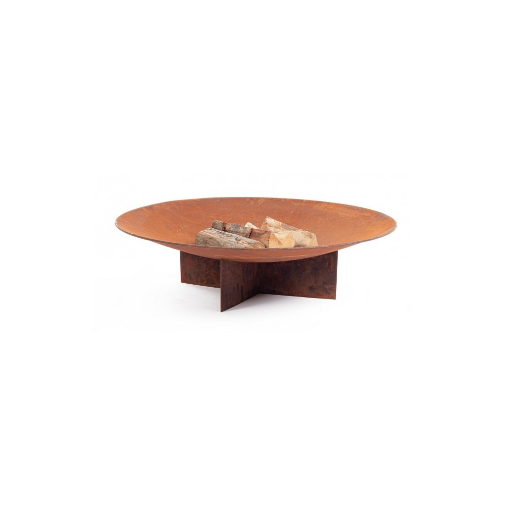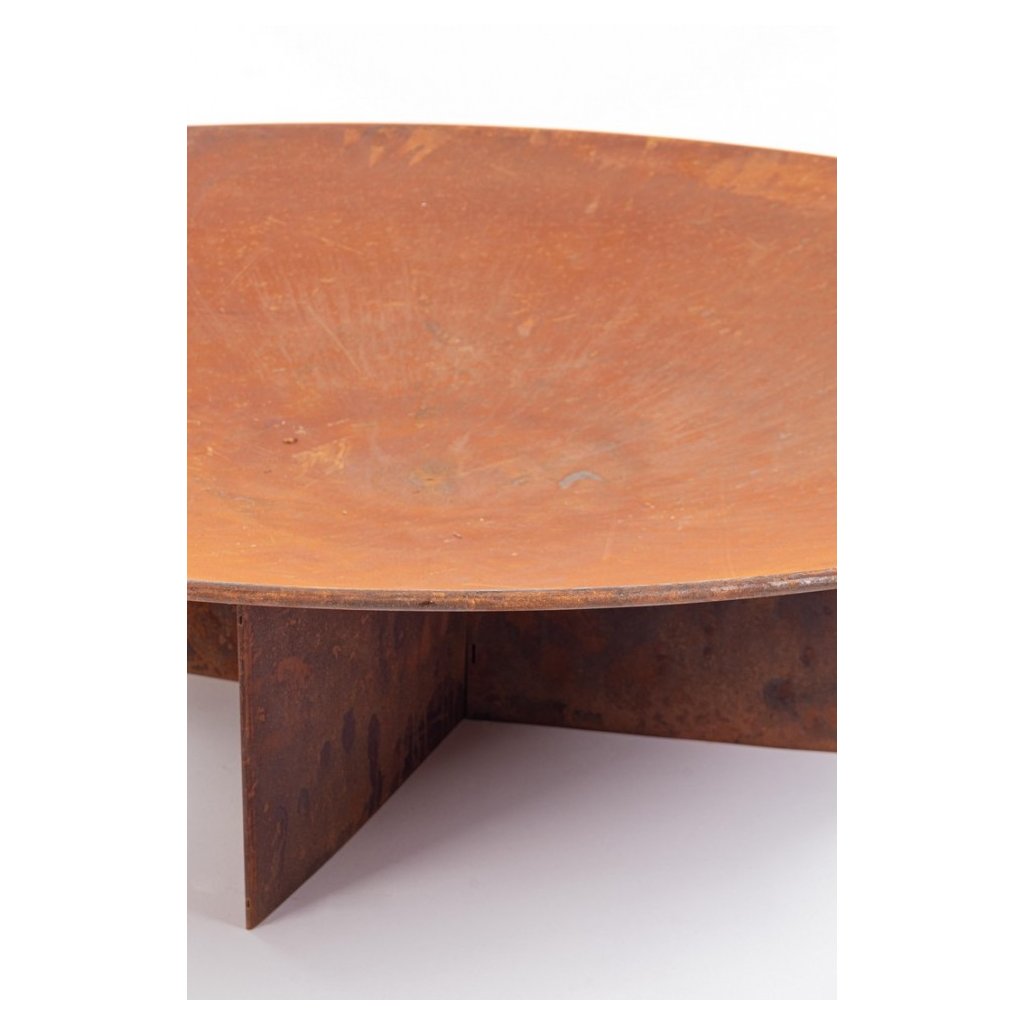 Ohniště NEBRASKA z vysoce odolné oceli od italského výrobce stylového nábytku BIZZOTTO. Ohniště tvoří kulatá místa s průměrem 100 cm, do které vložíte dřevo a zapálíte. Ta stojí na podstavci ve tvaru X ze skřížených kovových nohou, což zajišťuje stabilitu ohniště. To vše z oxidovaného kovu v barvě oranžové rzi. Skvělý doplněk do každé zahrady, terasy či většího balkonu pro společné opékání buřtů nebo večerních zpěvů u hořícího ohně.