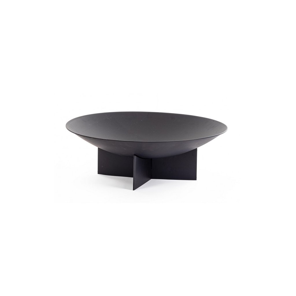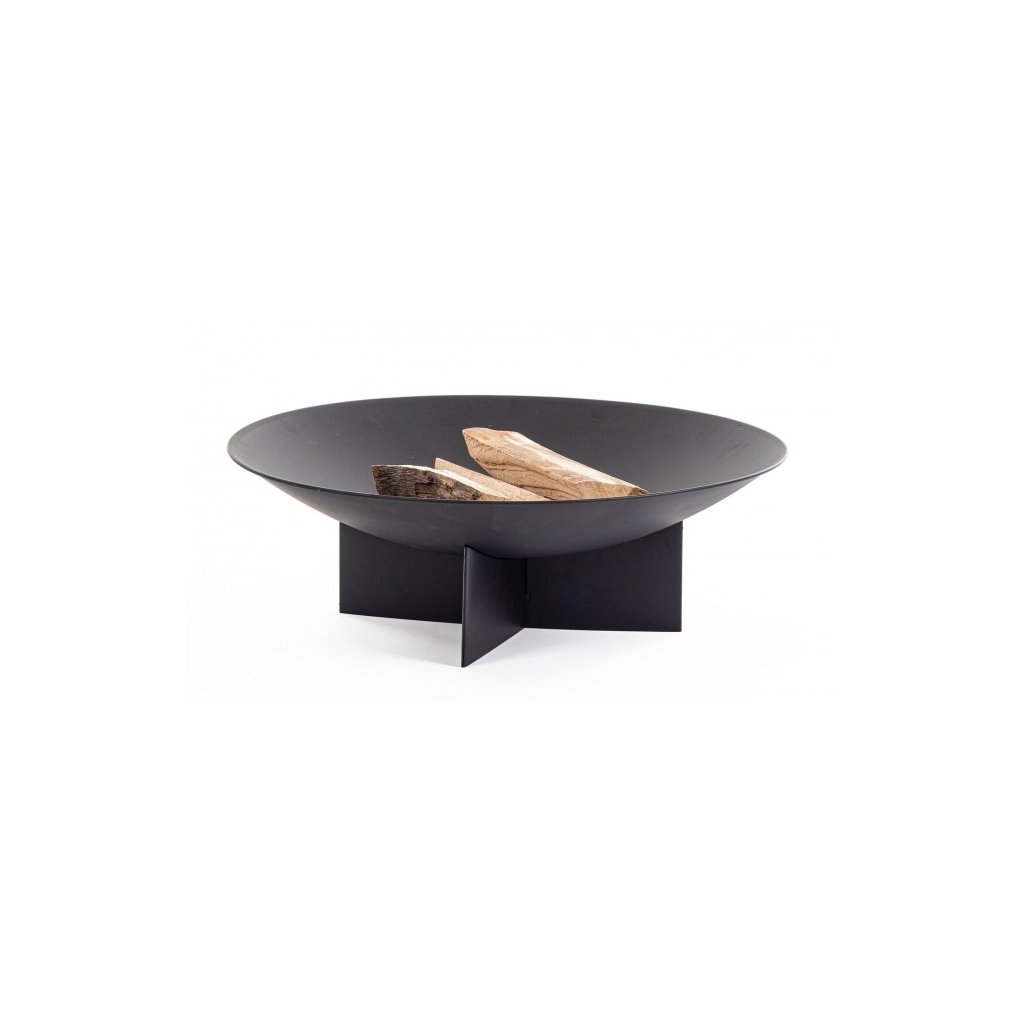 Ohniště NEBRASKA z vysoce odolné černě práškované oceli od italského výrobce stylového nábytku BIZZOTTO. Ohniště tvoří kulatá místa s průměrem 73 cm, do které vložíte dřevo a zapálíte. Ta stojí na podstavci ve tvaru X ze skřížených černých kovových nohou, což zajišťuje stabilitu ohniště. Skvělý doplněk do každé zahrady, terasy či většího balkonu pro společné opékání buřtů nebo večerních zpěvů u hořícího ohně.