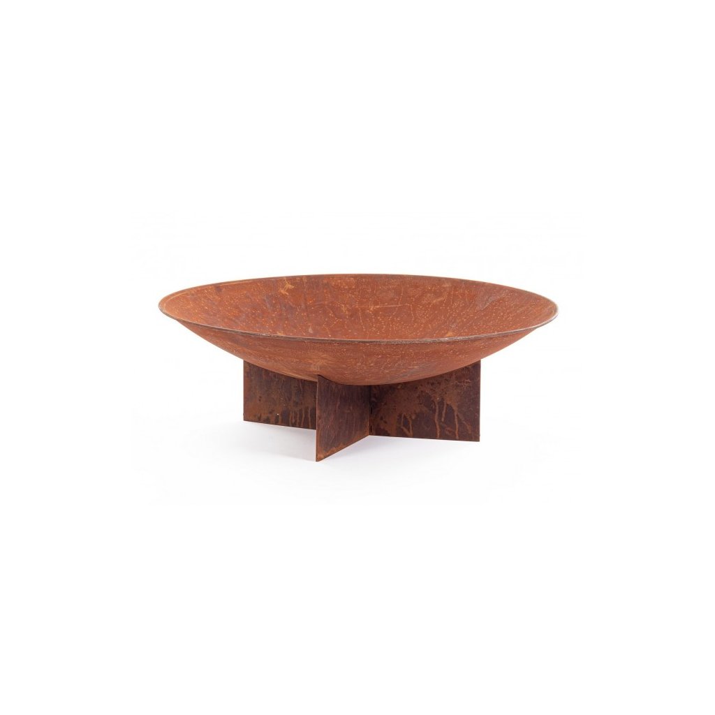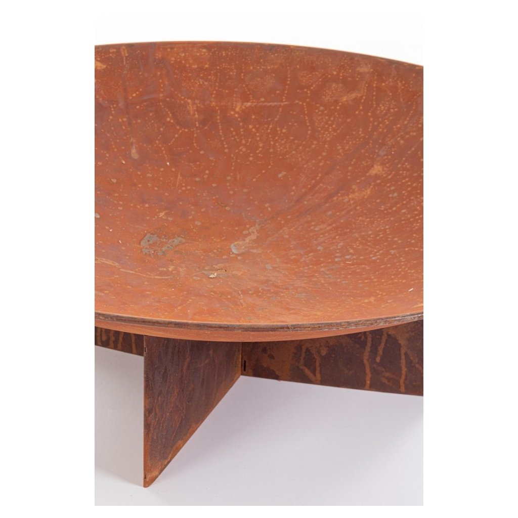 Ohniště NEBRASKA z vysoce odolné černě práškované oceli od italského výrobce stylového nábytku BIZZOTTO. Ohniště tvoří kulatá místa s průměrem 73 cm, do které vložíte dřevo a zapálíte. Ta stojí na podstavci ve tvaru X ze skřížených kovových nohou, což zajišťuje stabilitu ohniště. Vše z oxidovaného rezavého kovu. Skvělý doplněk do každé zahrady, terasy či většího balkonu pro společné opékání buřtů nebo večerních zpěvů u hořícího ohně.
