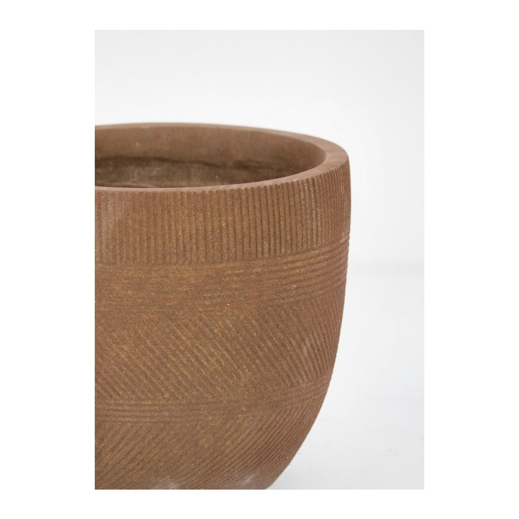 Set 5 venkovních truhlíků RIGO od italské firmy stylového nábytku BIZZOTTO. Truhlíky RIGO jsou vyrobeny ze směsi skleněného vlákna a jílu se spodním otvorem, zajímavou hnědou barvou a decentními geometrickými tvary rýh na povrchu. Krásný set, který se hodí na každou zahrady nebo terasu. Díky rozdílným velikostem dáte menší do větších a na zimu můžete skladně uklidit.