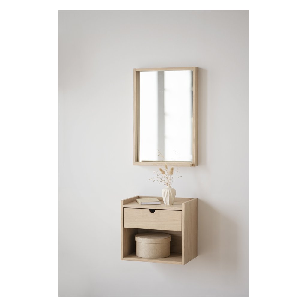 Noční stolek HILLMOND je velmi moderní a krásný kus nábytku. Díky jednoduchému skandinávskému designu a vysoké kvalitě je nástěnná police odolným kusem nábytku, který vám bude sloužit několik let. Krásně ho doplníte dalšími prvky z řady HILLMOND ve stejném provedení dubového dřeva, čímž vytvoříte dokonalou chodbu či ložnici. Skvěle zapadne do světlých i tmavých interiérů.